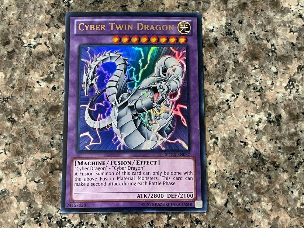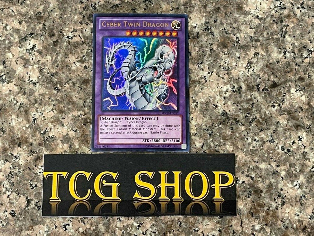Cyber Twin Dragon - Ultra Rare Yu-Gi-Oh! Card! This card will ship in a SEXY Dark Magician Girl Custom Sleeve (see last photo above), high-quality top-loader and bubble mailer! If you would prefer a less sexy card sleeve, just send a message and let us know! Also, please visit our page to browse through the excellent selection of rare, vintage Yu-Gi-Oh! cards!