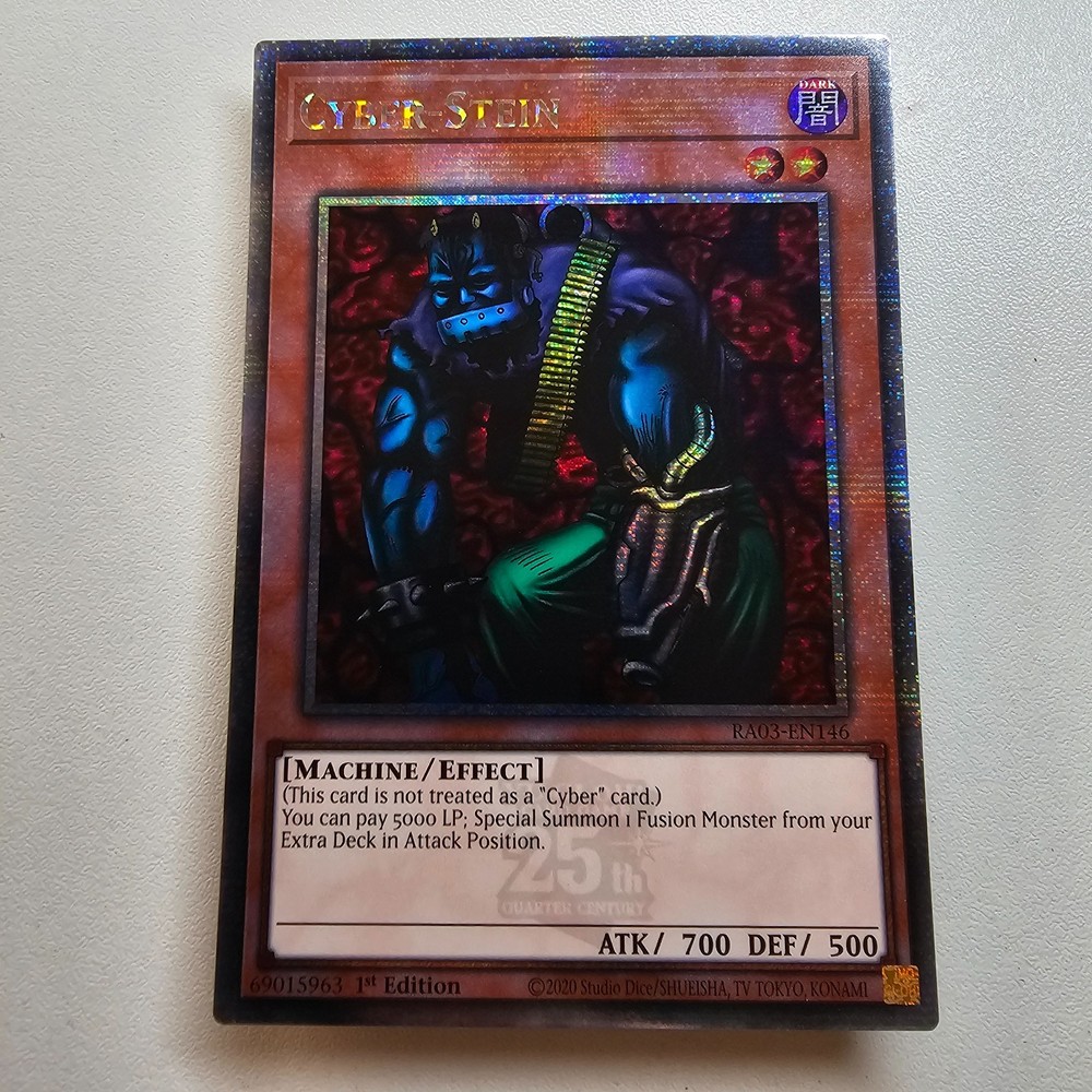 Absolutely thrilled with this Cyber Stein card! The Euro print quality is fantastic, and the Quarter Century Rare finish makes it a stunning collector's piece. Grandpa's Card Corner provided excellent service—fast shipping, secure packaging, and great communication. Highly recommend for any Yu-Gi-Oh enthusiast looking for rare cards at competitive prices!