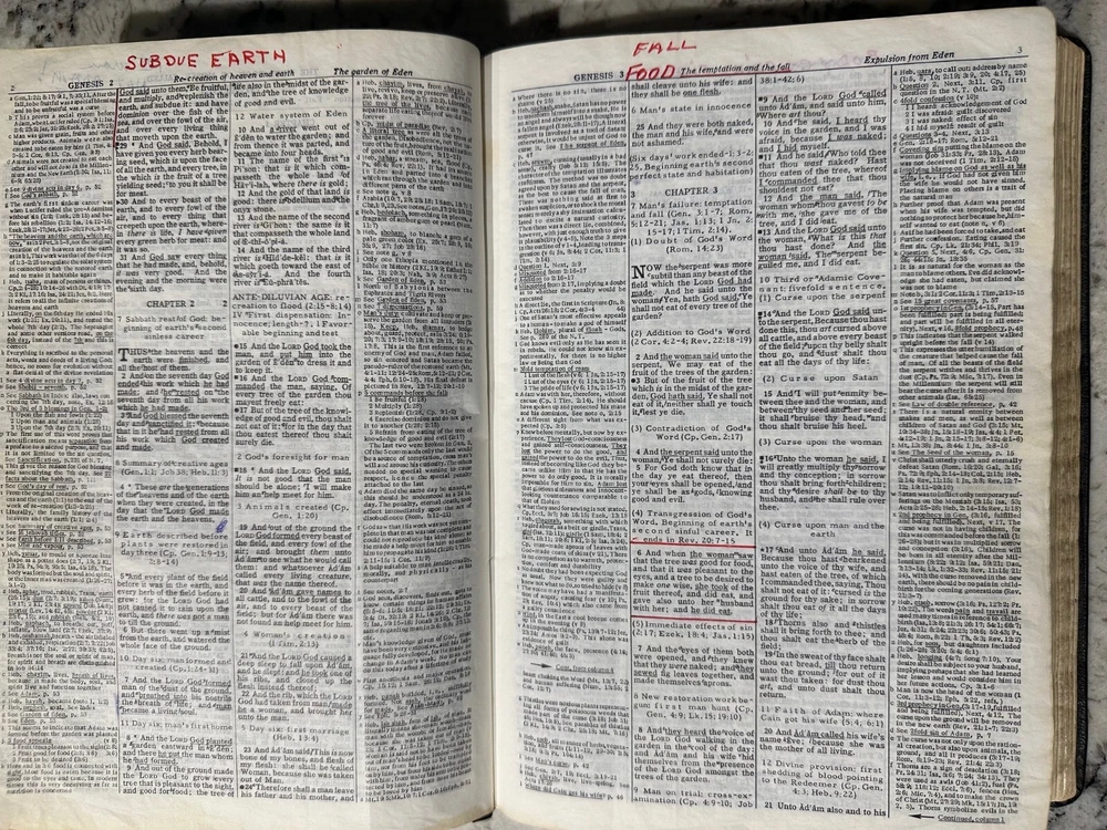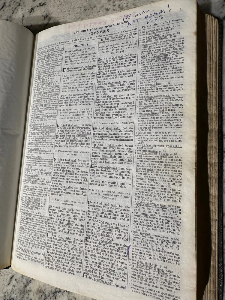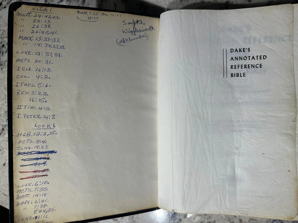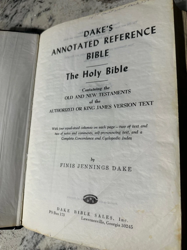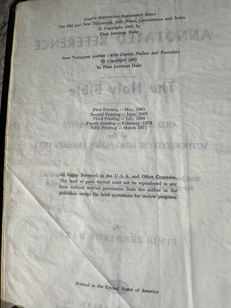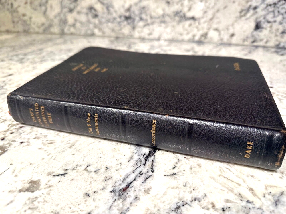 DAKE'S ANNOTATED REFERENCE BIBLE Vintage 1971 King James Version Printed in USA Genuine Leather Cover Showing significant wear, heavily marked/underlined, please see pictures for details. Will be carefully packed for transit.