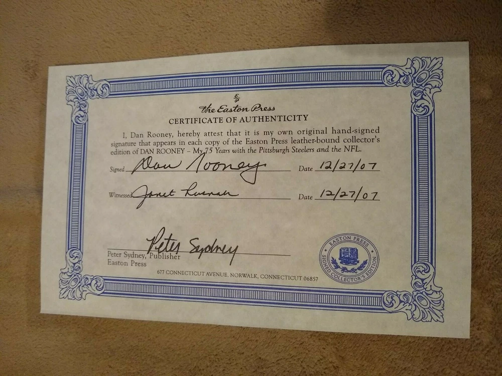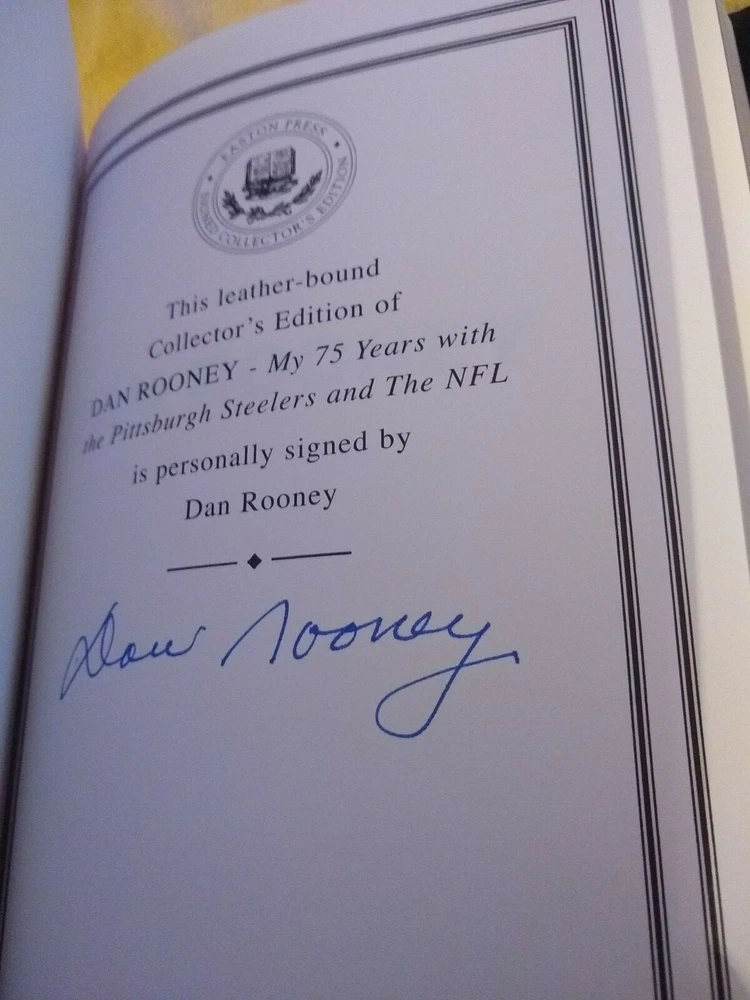 DAN ROONEY 75 YEARS WITH THE PITTSBURG STEELERS. Easton Press. SIGNED book and certificate. FINE...