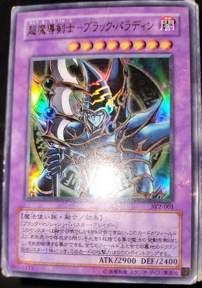 This Japanese Yu-Gi-Oh! TCG card features the Dark Paladin character in an ultra-rare holographic finish. The card number is Sy2-001 and it was manufactured by Konami in 2001. It is a Dark Magic card of the attribute Darkness, with a rarity of Ultra Rare. The card is suitable for ages 4 and up and is written in Japanese language. The Dark Paladin card is a must-have for collectors and players of the Yu-Gi-Oh! TCG game. Its unique features and rarity make it a valuable addition to any collection. Get your hands on this card today and add it to your deck!