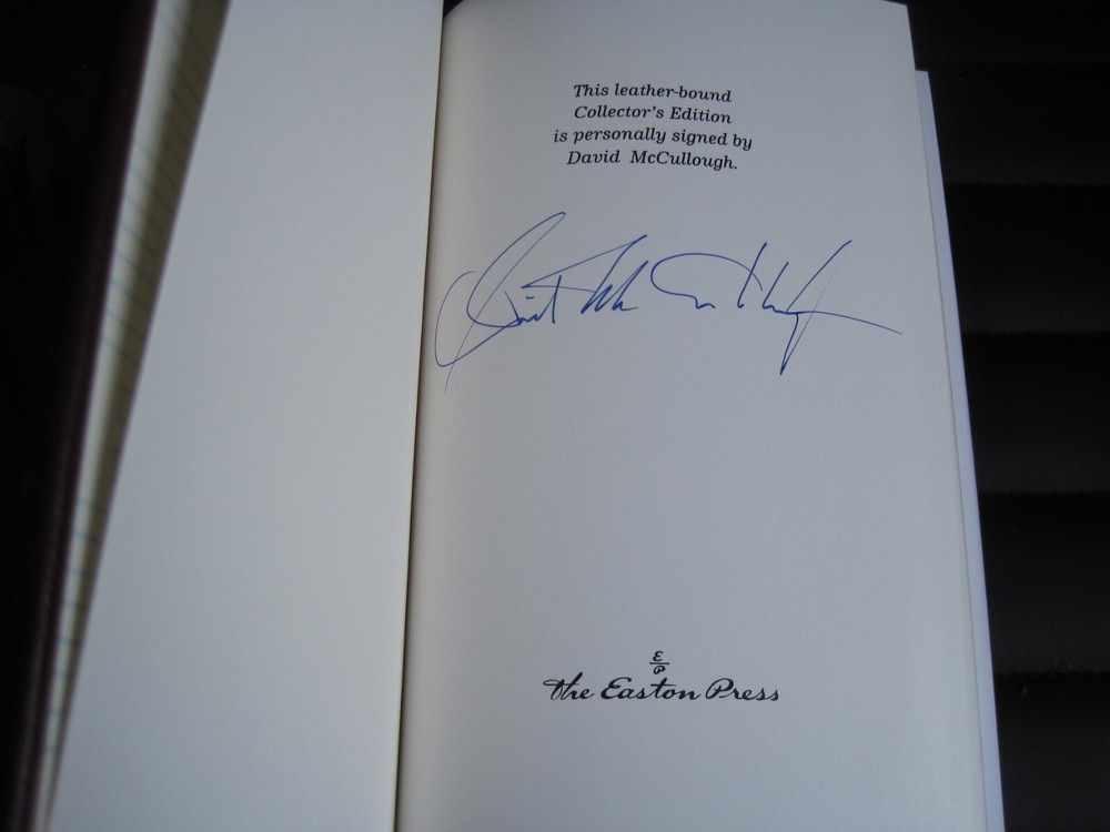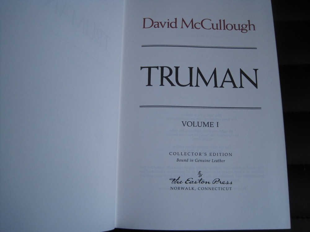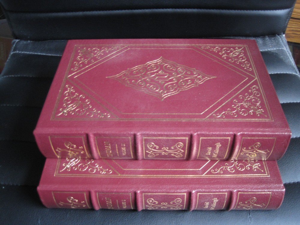 This is a leather bound 2 volume set signed collector's edition of historian David McCullough's best selling presidential biography - "Truman" . A very honest and well-written book on President Truman's childhood, adolescence, political career and presidency. Both books are are in great unread condition, and are beautifully illustrated (see images). Volume 1 is signed by the Pulitzer Prize winning historian David McCullough on the limitation page. Easton Press books are the golden standard in the publishing industry, highly collectible and lasting generations. Easton Press Full Genuine Leather Dubbed Spine Accented Wit 22 kt. Real Gold Satin Ribbon Page Marker Distinctive Cover Design Gilded Page Edges To Protect Against Humidity High Quality Acid - Free paper Smyth-Sewn Pages Silk-Moire Endleaves I combine multiple items for savings on shipping charges. I ship worldwide. Please ask about international shipping charges and/or different shipping options. Thank you!