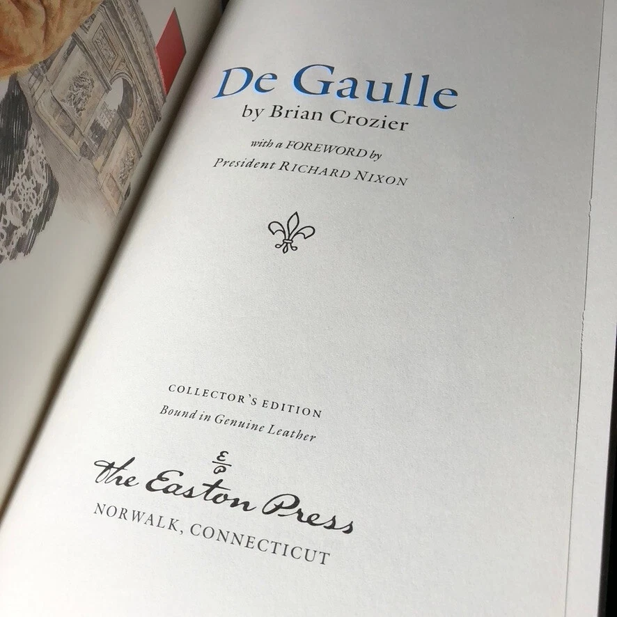 There may be signs of use/storage. There is writing on one of the cover pages. Please see photos. This collector's edition book titled "DE GAULLE" by Brian Crozier is a must-have for any book enthusiast. The book is bound in high-quality leather and was printed in 1990 by Easton Press. The author takes the reader on a journey through the life of one of France's most iconic figures, Charles de Gaulle. The book is written in English and contains special attributes that make it a valuable addition to any collection. It falls under the category of Antiquarian & Collectible and Books & Magazines. The subject of the book is Biography & Autobiography, making it a great choice for those interested in learning more about the life of de Gaulle. The book is a true gem for any collector and is sure to be a prized possession for years to come.