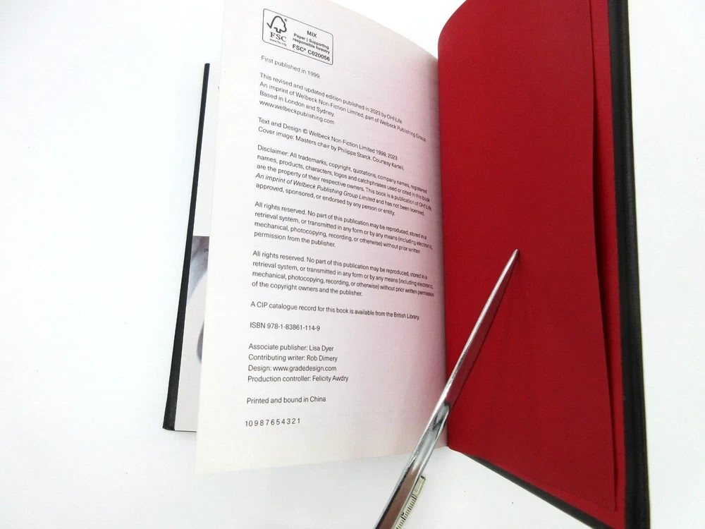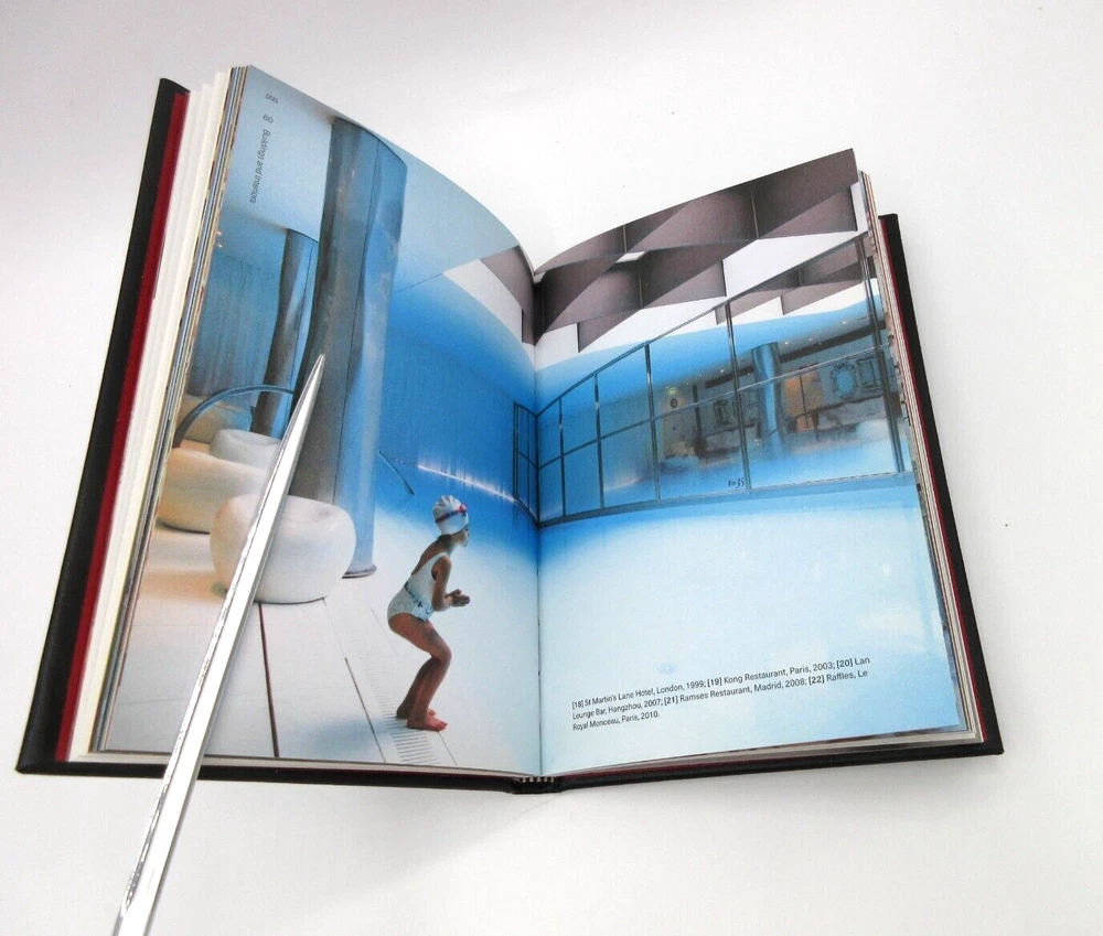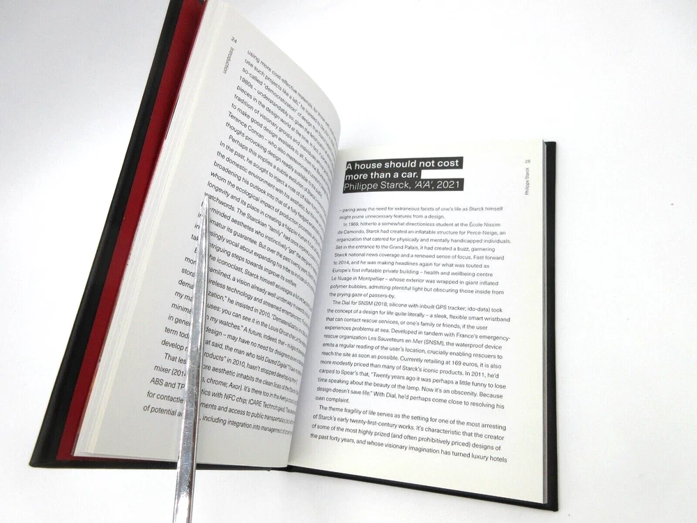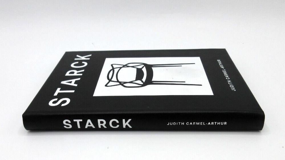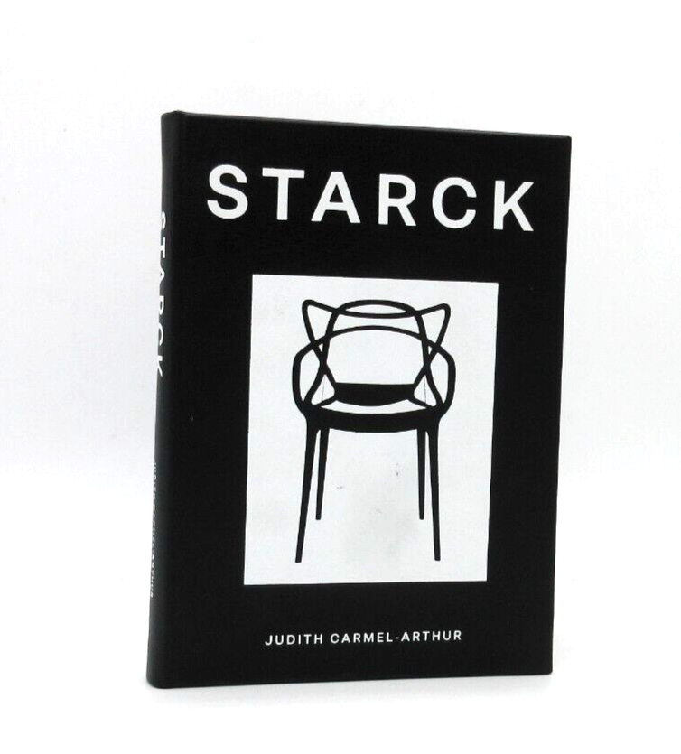 Bound by hand in bonded Leather Professor and post-researcher, Judith Carmel-Arthur Handcrafted 160 pages Size: 5 ⅛" W x 1" D x 7 ½" H A design monograph on architect Philippe Starck, also a ground-breaking designer of furniture, interiors and hotels. Contains a historical-critical essay discussing the life and work of Starck, followed by an illustrated appreciation of his work.