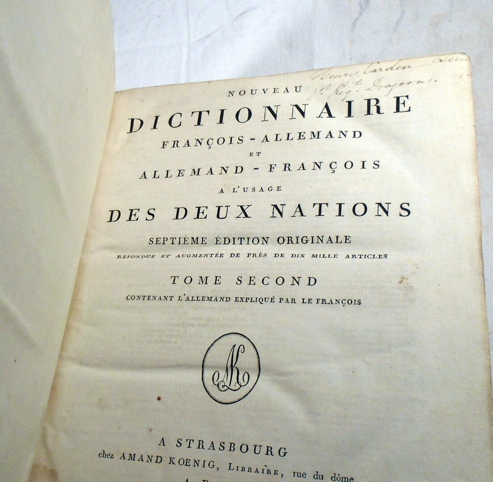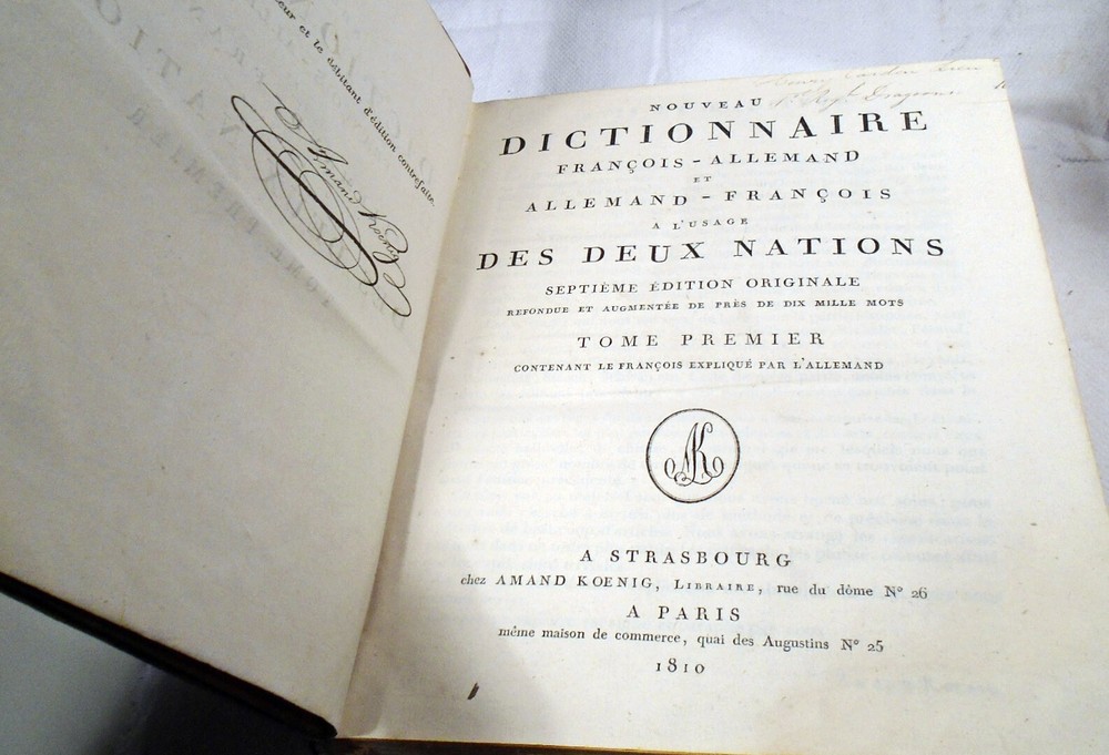 Nouveau dictionnaire françois-Allemand et Allemand-François à l'usage des deux nations. Septième édition originale refondue et augmentée de près de dix mille mots.