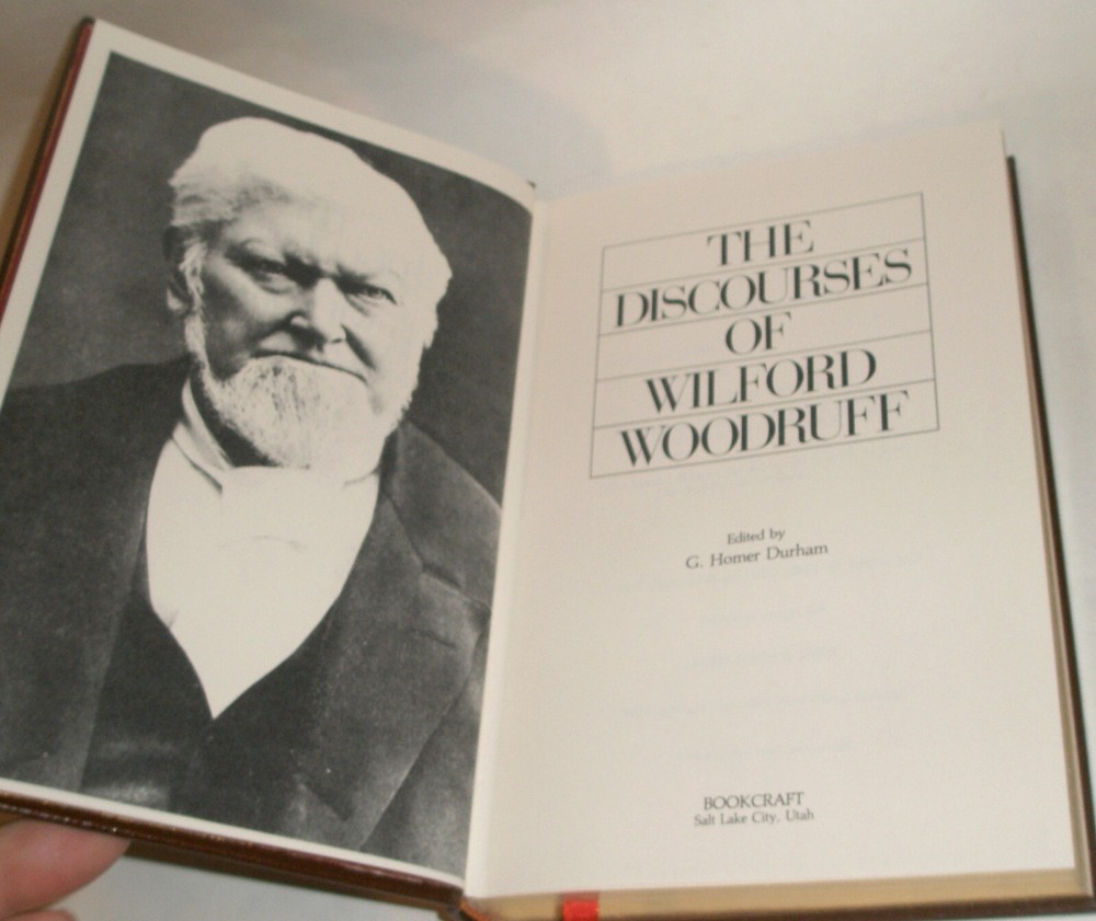 Discourses of Wilford Woodruff Edited by G. Homer Durham Published by Bookcraft (1995) This book was never sold, but is a LDS Church Employee Christmas Gift Edition Bound in beautiful top grain Black Leather, hubbed spine, gold gilt page edges, maroon moiré end pages and a sewn in silk ribbon marker. These were given by The Church of Jesus Christ of Latter-day Saints (the Mormons) to the employees of the Church as a Christmas gift in 1995. The text in this edition is reproduced exactly from the original 1946 edition. Condition: Excellent 1st Thus Edition Hardcover Book! The binding is tight and all 357 pages within are bright white with no writing, underlining, high-lighting, rips, tears, bends, or folds. The covers are perfect! Please check out the photos! The book appears unread. Please view the photos. Terms and conditions: Please note that by placing a bid on this auction you agree to all of the published terms, conditions and payment options. Please review the listing completely and carefully and ask any questions you may have before placing your bid. Your bid is a binding contract. THANKS AND GOOD LUCK!!!