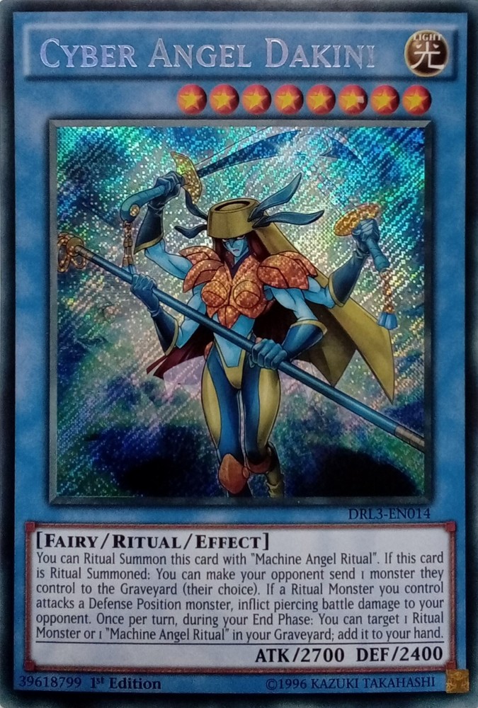DRL3-EN014 CYBER ANGEL DAKINI SECRET RARE 1ST EDITION ALL YU-GI-OH CARDS I SELL ARE KONAMI TOURNAMENT LEGAL. CARDS ARE ALL NEAR MINT TO LIGHTLY PLAYED CONDITION. POSTAGE IS FREE SO YOU CAN BUY AS MANY CARDS AS YOU WANT FROM US AND NOT PAY A PENNY POSTAGE. IF YOU HAVE ANY QUESTIONS PLEASE FEEL FREE TO CONTACT ME. Track Page Views With Auctiva's FREE Counter