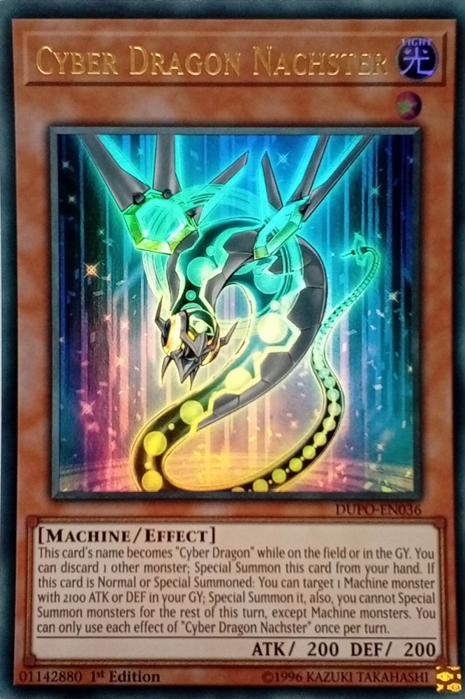 DUPO-EN036 CYBER DRAGON NACHSTER ULTRA RARE 1ST EDITION ALL YU-GI-OH CARDS I SELL ARE KONAMI TOURNAMENT LEGAL. CARDS ARE ALL NEAR MINT TO LIGHTLY PLAYED CONDITION. POSTAGE IS FREE SO YOU CAN BUY AS MANY CARDS AS YOU WANT FROM US AND NOT PAY A PENNY POSTAGE. IF YOU HAVE ANY QUESTIONS PLEASE FEEL FREE TO CONTACT ME. Track Page Views With Auctiva's FREE Counter