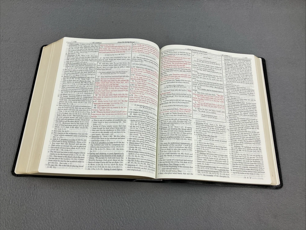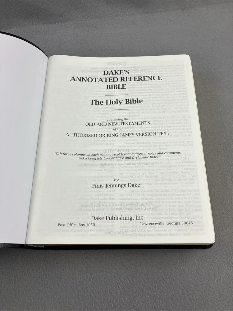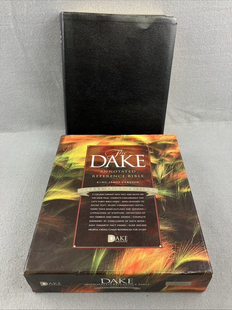 Dake Annotated Reference Bible-KJV-Large Print with Original Box Leather Black VERY GOOD CONDITION -- CLEAN COPY/NO MARKINGS ON THE INSIDE (see pics) *Item will be protected well for shipping and comes with a tracking number for confirmation.* I ship out items every day so expect a quick delivery!