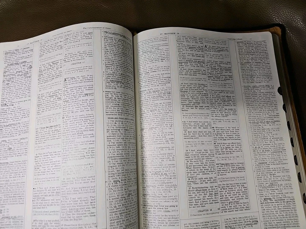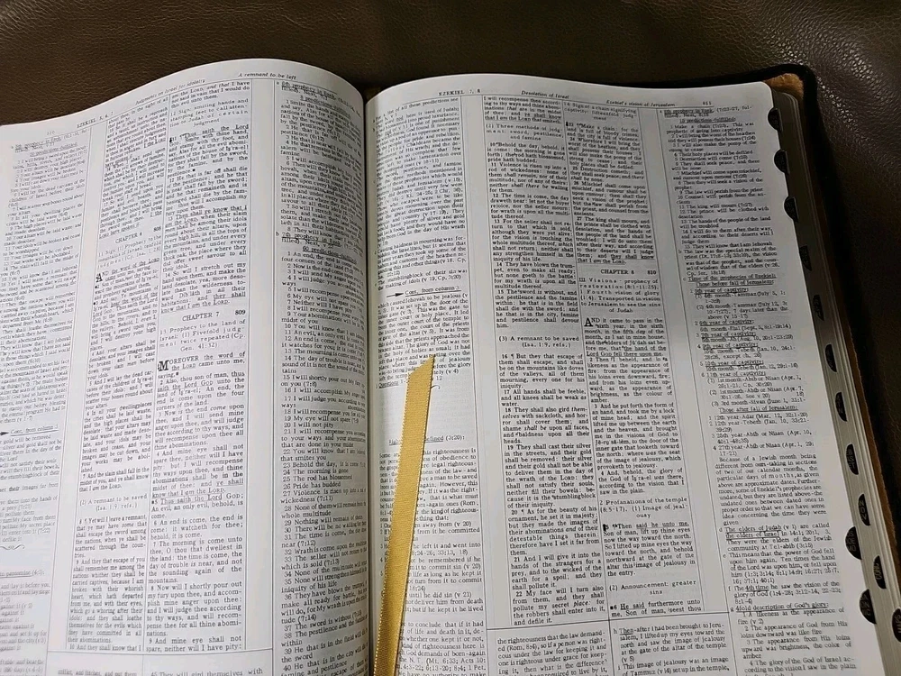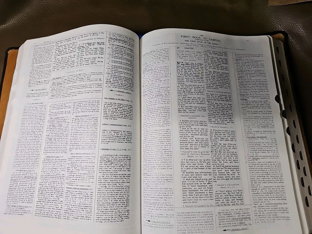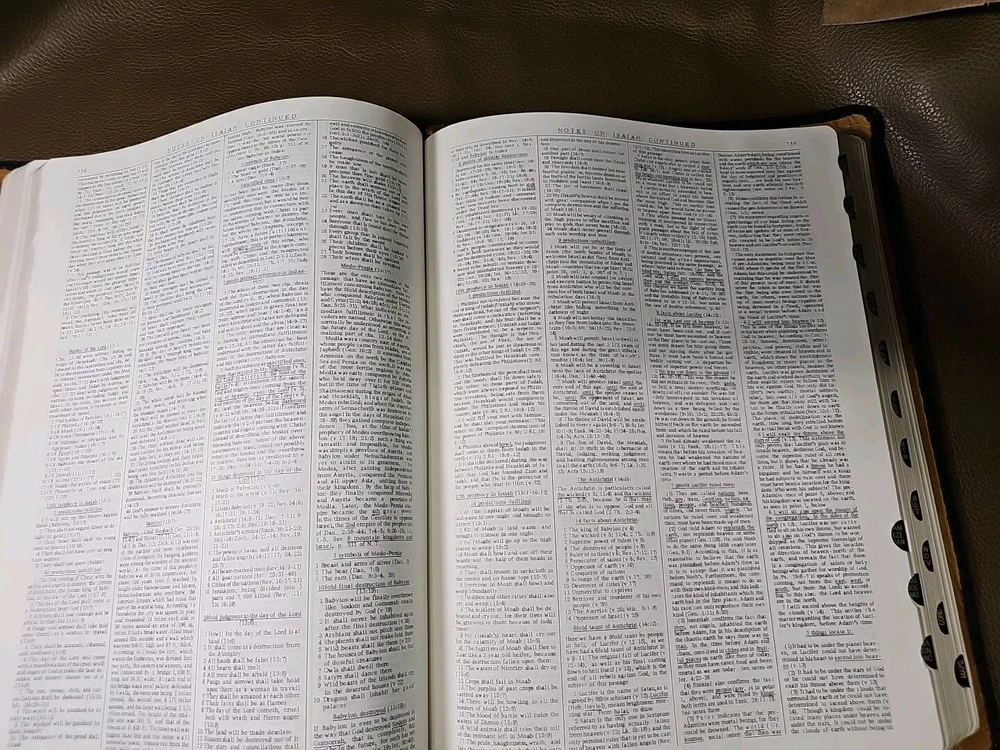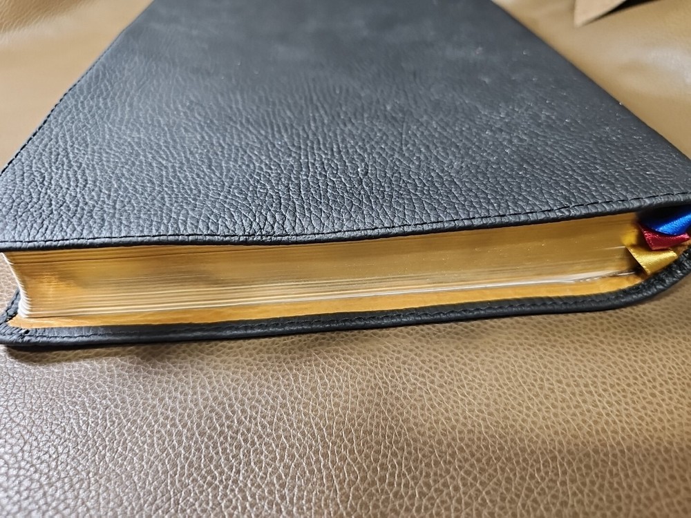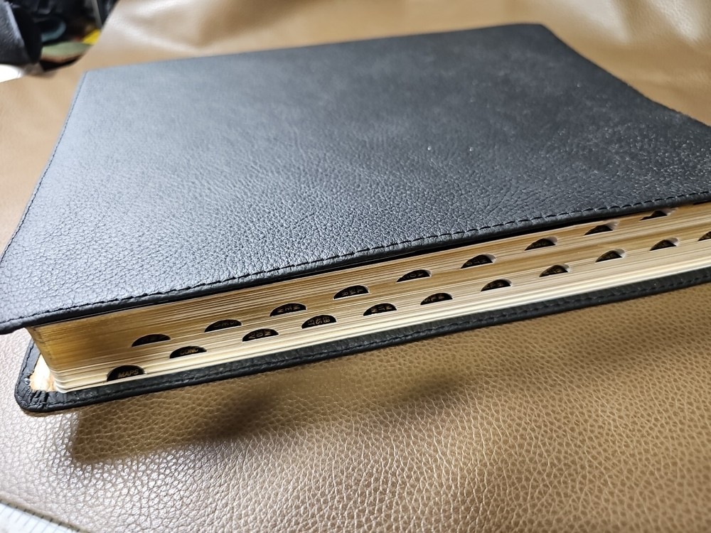 Up for your consideration is the rebind Dake's Annotated Reference Bible. Goatskin rebind cover with cowhide leather Liner. KJV Bible. Five raised ribs and three ribbons were added to this beautiful bible. As I state in all my listings, I am not a professional in rebounding books. I have acquired the hobby and enjoy doing it. Please look at all the photos for they, too, are part of the description. This is not a red-letter edition. Please read all my feedback regarding all the bibles I have sold. Stay blessed and humble.