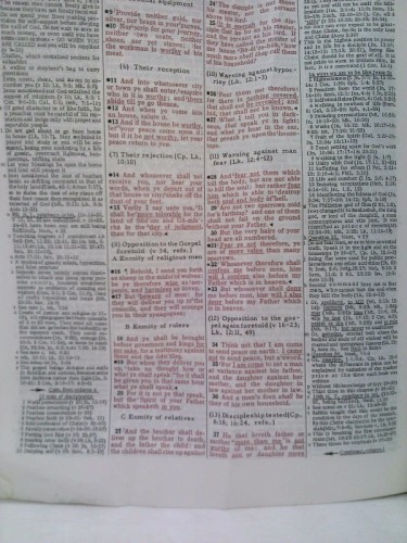 | Synopsis | Red letter 35,000 commentary notes 4-column format Text and notes side-by-side 500,000 cross/chain references 9,000 headings dividing text Complete concordance lists every Bible word 8,000 sermon outlines Summary at end of each book Key Hebrew and Greek words defined 2,352 pp. |