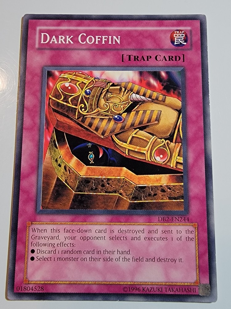 Dark Coffin DB2-EN244 Common Unlimited Yugioh. Overall lightly played condition. (Please reference pictures for c osmetic condition). Take advantage of our multi item discount!!! When you buy 2 items you will have the opportunity to select a 3rd item of equal our lesser value for free from our whole inventory. (Must use Ebay's shopping cart feature in order to take advantage of this discount). If you have any inquiries please feel free to message us and we will respond as soon possible, usually within 24 hours. SHIPPING We almost always use USPS as our primary SHIPPING service. We ship within 24 hours of receipt of payment and will always provide tracking, unless otherwise stated in the listing. (We reserve the right to use a different carrier or service). FEEDBACK Your FEEDBACK is important to us as a growing small business. If for any reason you are unhappy with your transaction, please message us and we will do everything in our power to make it right. Returns Returns are accepted within 30 days of confirmation of delivery. If there is anything you are unhappy about with your purchase please message us and we will respond within 24 hours to your concerns. Thank you for supporting our small business. We appreciate your valued business with us and look forward to serving you in the future. Dan & Tonya Dio's Eclectic Treasures