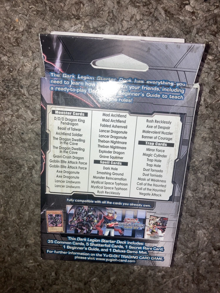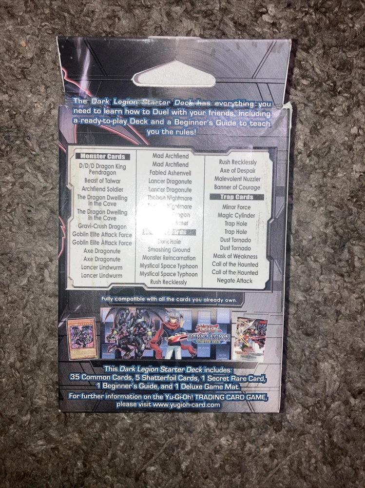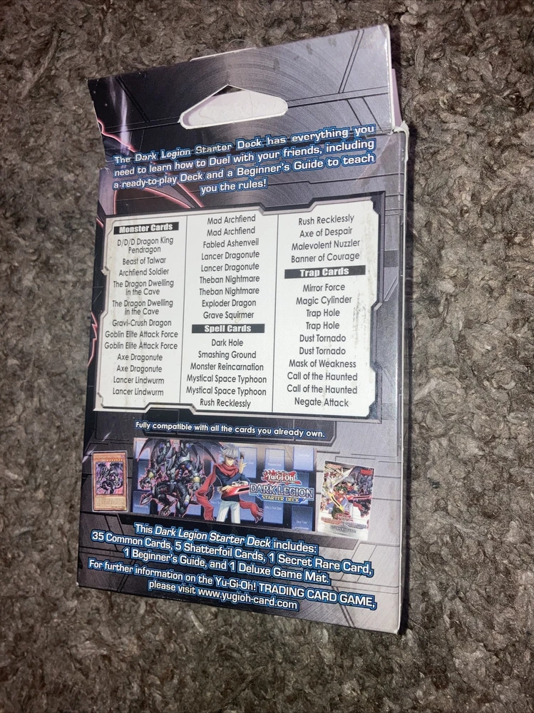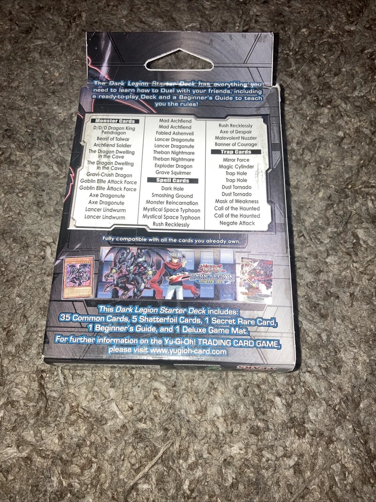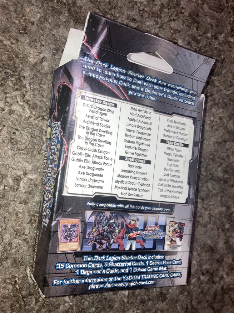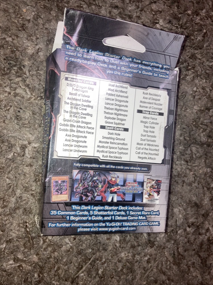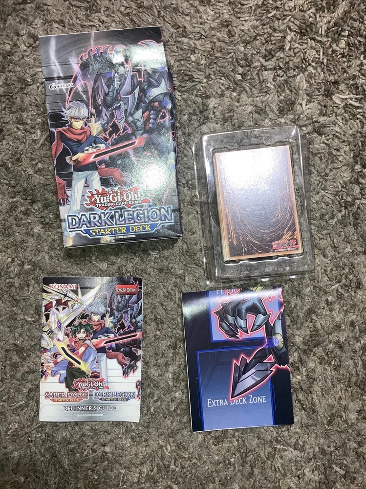 Get ready to duel with the Dark Legion Starter Deck from Konami's Yu-Gi-Oh! TCG. This 1st edition set includes everything you need to jump right into the action, featuring cards from the Dark Legion set. Perfect for collectors and players alike, this deck is sure to be a hit for those looking to enhance their Yu-Gi-Oh! collection or get started with the game. This set includes cards featuring the iconic Yu-Gi-Oh! characters and their unique abilities, along with other exciting features like rare cards and powerful spells. Whether you're a seasoned duelist or a beginner, the Dark Legion Starter Deck is a must-have addition to any collection.