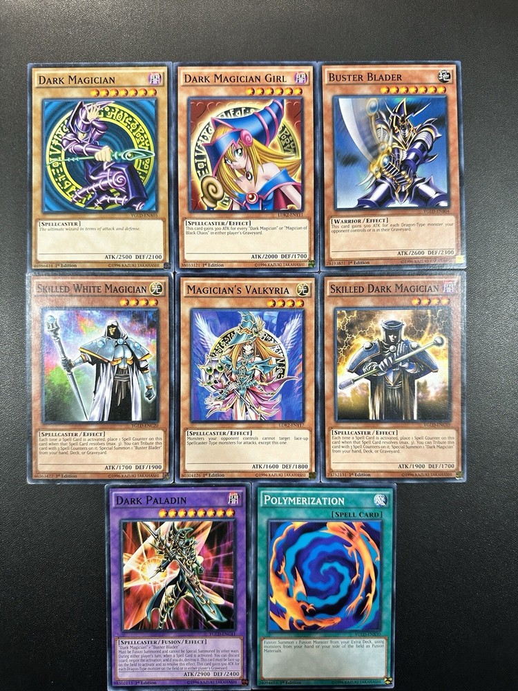Absolutely love this set! The cards are in fantastic condition—some near mint, others lightly played but still look amazing. The artwork on Dark Magician and Dark Paladin is stunning, and having Buster Blader and Magician Girl in the mix makes it even better. Perfect for collectors or players who want iconic Yu-Gi-Oh! cards. Highly recommend!