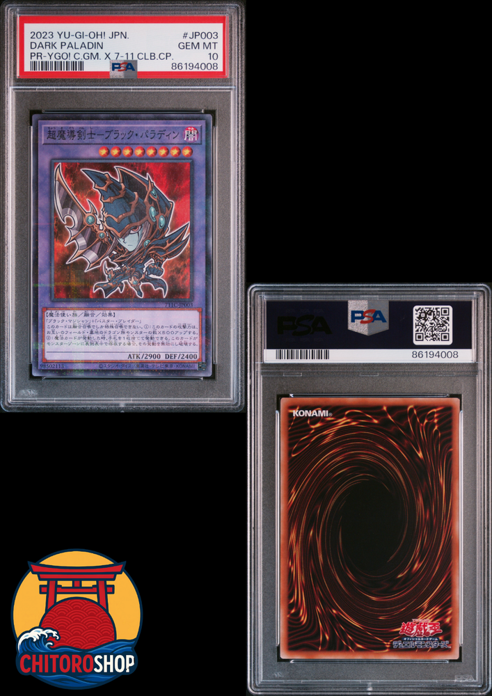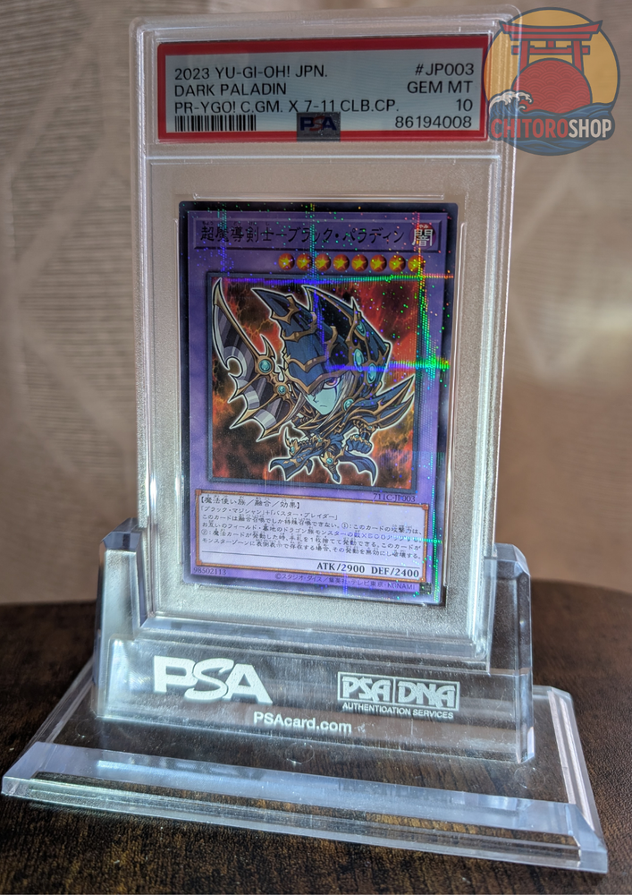π Yu-Gi-Oh! Card Dark Paladin 711C-JP003 β 7-Eleven Promo β PSA 10 GEM MINT π π Item Details : Name : Dark Paladin Set : 7-Eleven Promotional Release Card Number : 711C-JP003 Edition : Japanese Exclusive Promo Language : Japanese Condition : PSA 10 β GEM MINT Certification : Professionally graded by PSA π¦ Shipping : Ships from : Japan Carrier : Japan Post (if service is available in your country) Packaging : Securely and carefully packed to ensure maximum protection during transit π Return Policy : Conditions : Returns accepted only if the item received does not match the description Return Shipping : Paid by the buyer unless a clear seller error is proven π¬ Additional Notes : We are not responsible for PSAβs grading , and even a PSA 10 card may present very minor imperfections . Please refer to the photos provided , which show the actual item you will receive. The display stand visible in some photos is not included . Feel free to contact us for any further questions or photo requests.