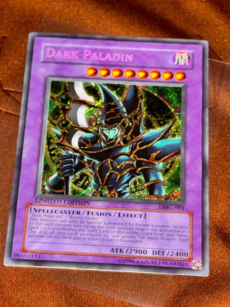 The Dark Paladin DMG-001 Duel Master's Guide Limited Edition card is a sought-after collectible for Yu-Gi-Oh! TCG enthusiasts. Manufactured by Konami, this Secret Rare spellcaster card boasts impressive stats, with 2400 Defense/Toughness and 2900 Attack/Power. Its Dark attribute and limited edition status make it a rare and valuable addition to any card collection. The card's English language and unique features, such as being an Effect and Fusion card, add to its appeal as a must-have for fans of the game.