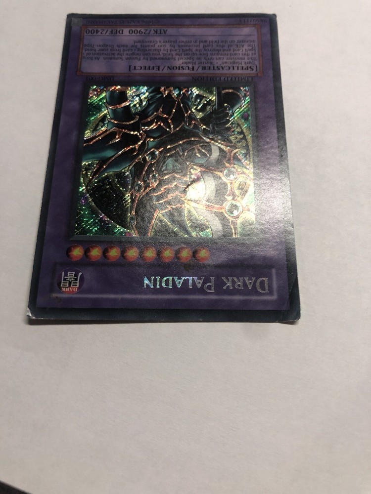 Dark Paladin (DMG-001) - Secret Rare Yugioh. Condition is "Used". Shipped with USPS First Class. Card is in rough shape - see photos....