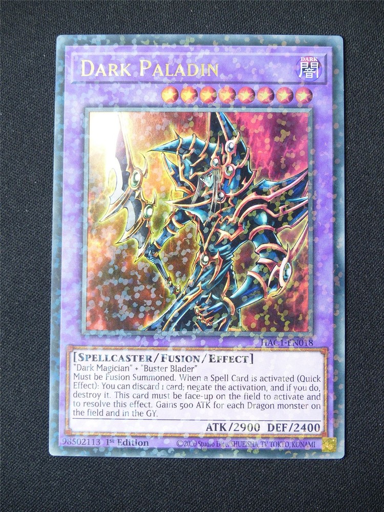 Dark Paladin HAC1 Terminal Rare - 1st ed Yugioh Card #1UZ Our stock code: DAISY14-1UZ Used. Card is in great condition but is used not new - It may have VERY slight wear - please see the picture - this is the card for sale, not a stock picture. Only pay shipping once no matter how many single cards you order! Offer includes worldwide shipping! If you would like any further information about this item, or have any problems with our products or with our service please get in touch with us - We'll do our best to help!