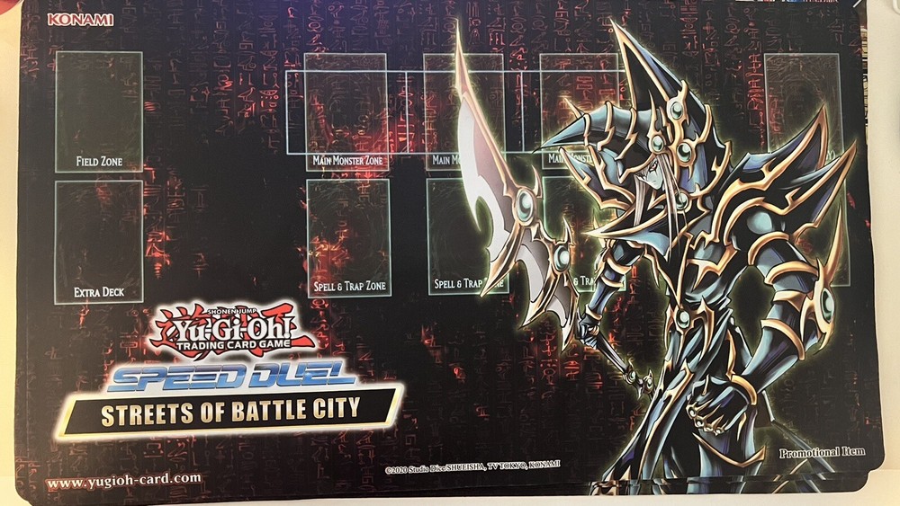 This Konami Official Speed Duel Playmat is the ultimate prize for any CCG enthusiast. It features a stunning design of Jinzo, the powerful trap card, and is the perfect accessory for any duelist. Made specifically for the Yu-Gi-Oh! Trading Card Game, this playmat is perfect for tournaments or casual play. The high-quality material ensures it will last for years to come, and the non-slip backing keeps it firmly in place during gameplay. As a Main Event Prize for 1st Place at the YCS SJC, this playmat is a rare and highly sought-after item. Add it to your collection today and take your dueling to the next level!