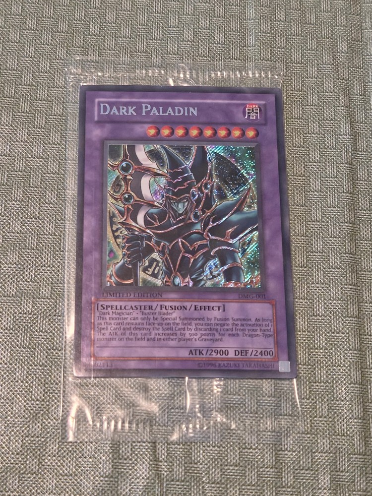Dark Paladin Limited Edition Holo Card sealed in plastic in Mint Condition. For sale with set of 4 other cards, First Edition Labyrinth Tank, First Edition Flash Assailant, First Edition Flame swordsman, and Holographic Penguin Soldier. the 4 additional cards are all in great condition. each card is in a plastic sleeve and will be shipped in very protective packaging. if you would like to buy a specific card from the set I'm willing to sell them individually. Also if you have any questions or would like to see pictures of a specific cards, feel free to ask.