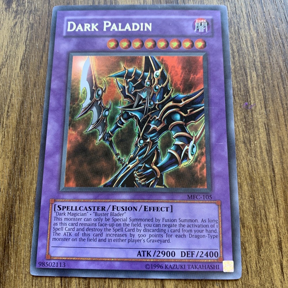Here is Dark Paladin MFC-105 In excellent condition! Some light scratches on the back. I will ship in a hard plastic cover and in a box to ensure your order arrives safely! If you have any questions please feel free for message me! Thanks for looking!