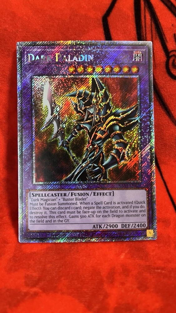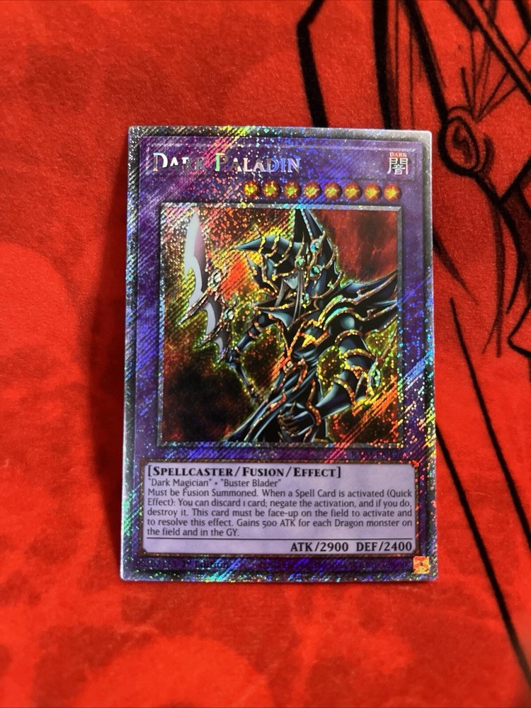 This Platinum Secret Rare Dark Paladin is a must-have for any Yu-Gi-Oh! collector! The stunning holographic finish and powerful 2900 ATK make it a standout in any deck. As a 1st Edition from the Quarter Century Bonanza set, its rarity and near-mint condition add serious value. Perfect for both competitive play and display—absolutely worth it!