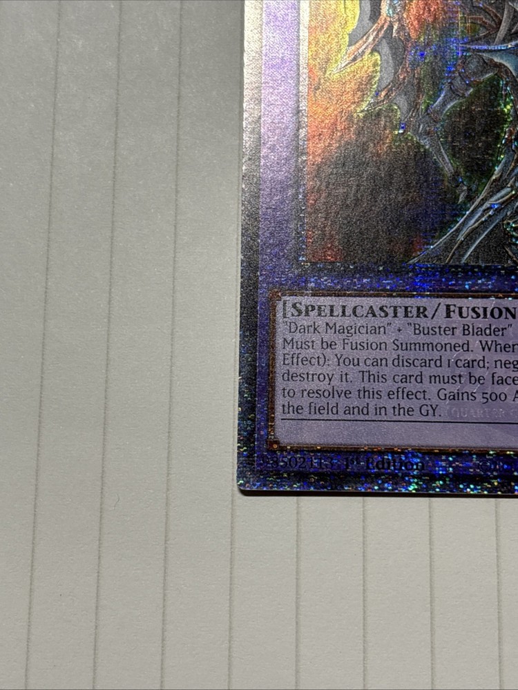 | Card Text | "Dark Magician" + "Buster Blader"Must be Fusion Summoned. When a Spell Card is activated (Quick Effect): You can discard 1 card; negate the activation, and if you do, destroy it. This card must be face-up on the field to activate and to resolve this effect. Gains 500 ATK for each Dragon monster on the field and in the GY. |