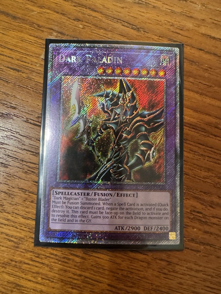 Elevate your Yu-Gi-Oh! TCG collection with the Dark Paladin RA03-EN126, a Platinum Secret Rare 1st Edition card that exudes power and rarity. As a cornerstone piece for players and collectors alike, this card features the iconic Darkness attribute, ensuring its place in the annals of strategic gameplay. Its English language version adds to the appeal for North American enthusiasts, while the Japanese card size fits seamlessly into any collection. Produced by the renowned Konami, the Dark Paladin card is a must-have for those aged 8 and above, capturing the essence of the Yu-Gi-Oh! franchise. This particular card is not graded, leaving you the opportunity to assess its quality for yourself. Whether for competitive play or as a treasured collectible, this card is a valuable addition to any Yu-Gi-Oh! TCG assortment.