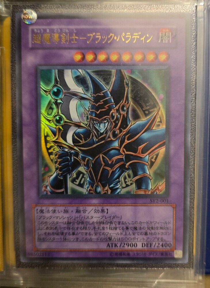 This Yu-Gi-Oh! TCG card is an Ultra Rare Dark Paladin from the - Yugi - set. The card is in Japanese language and has an Unlimited edition. It is a Fusion card with a Card Size of Standard and belongs to the Attribute/MTG:Color of Darkness. The card number is SY2-001 and it was manufactured in 2001. This Dark Paladin card is perfect for collectors and players alike. It is not autographed and is in a Card Condition of 400010. The rarity of this card makes it a valuable addition to any collection. Don't miss out on the opportunity to own this unique card.