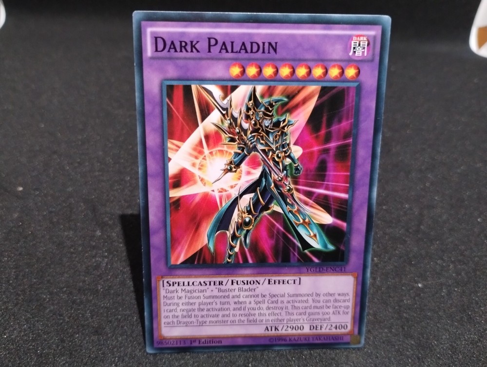 Dark Paladin - YGLD-ENC41 - 1st ed - NM - Common - Yugioh Yu-Gi-Oh! ***We offer Combined Shipping*** CARD CONDITION NM (Near Mint): Card has one or two very small nicks on a edge/corner. SP/LP (Slightly Played-Light play): Card has light whitening on a edge and/or has light play marks. may have a few small scratches on the surface MP (Moderatly Played): Card has sings of wear around the edges and moderate to visible scratches on them. HP (Heavily Played) : Card has been heavily played with . The card is still playable. Will show signs of love DAMAGED : Card went to war and back . Will show signs of damage Ghostly Touch X1 NM Uprising FAB Cold Foil
