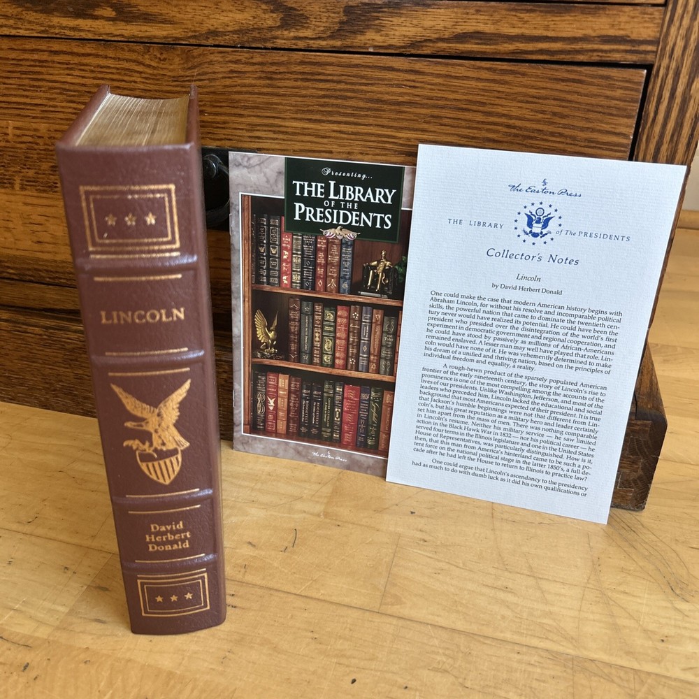 This is a special edition book titled “LINCOLN" by David Herbert Donald published by Easton Press in 1996. It is a historical biography written in English and features a leather binding. This is a great piece to add to your collection. This book is unread and the spine is not broke.