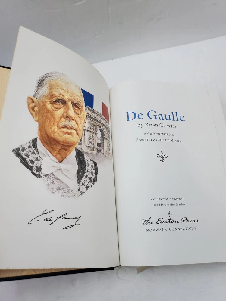 Marker mark on lower corner of inside front cover. Please see all photos. This rare and vintage Easton Press 1990 Collector's Edition book titled "De Gaulle" by Brian Crozier is a must-have for any history or biography enthusiast. The hardcover format is beautifully crafted with leather binding, making it a timeless addition to any bookshelf. The book is written in English and focuses on the life and adventures of one of the most iconic French presidents, Charles de Gaulle. It is a nonfiction narrative that provides a detailed and captivating look into the man's life and his impact on French history. This book is perfect for adults and is a great addition to any collection.