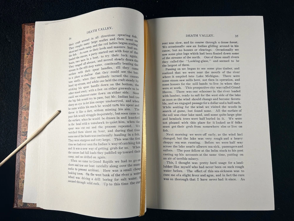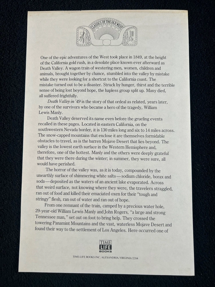 Absolutely love this vintage copy of *Death Valley in '49*—it’s in fantastic condition, with a sturdy leather cover, tight binding, and clean, unmarked pages. The ribbon marker is a nice touch, and the included Time-Life flier adds to its charm. Shipping was secure, no ugly stickers, and the seller provided clear photos for transparency. A great find for any Old West history enthusiast!