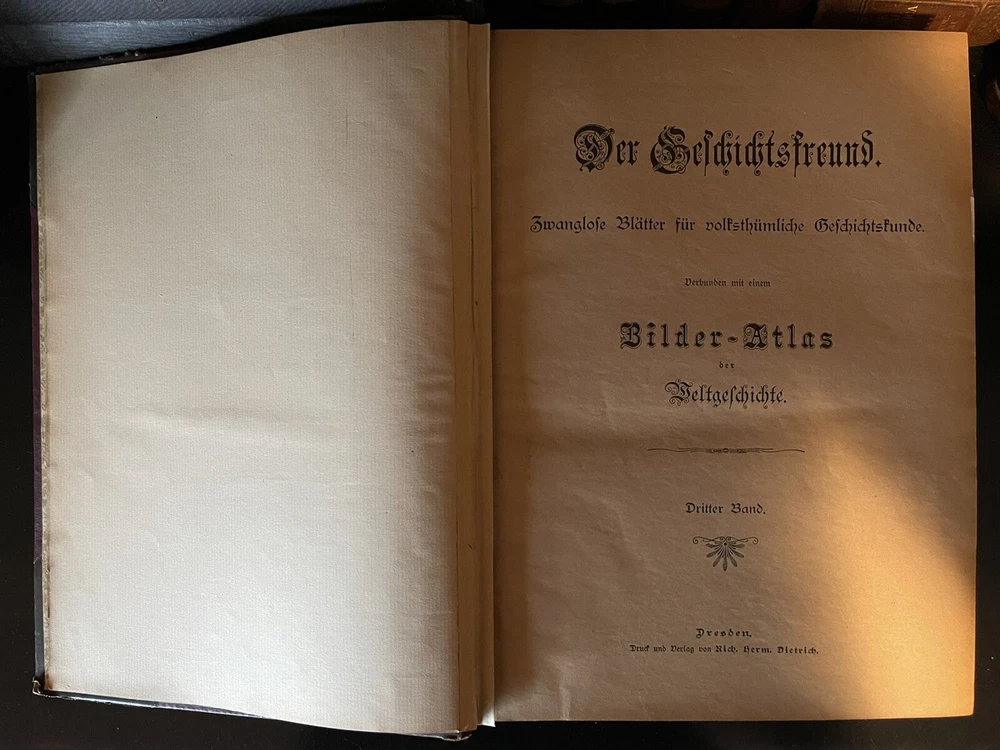 Der Geschichtsfreund Bilder-Atlas Dritter Band, 1897 *RARE*. Der Geschichtsfreund Zwanglose Blätter für volkstümliche Geschichtskunde Verbunden mit einem Bilder-Atlas der Weltgeschichte Dritter Band (The History Friend Informal Sheets for Folklore History Connected with one Picture Atlas of the World History Third Volume). German Language. Shipped with USPS Media Mail.