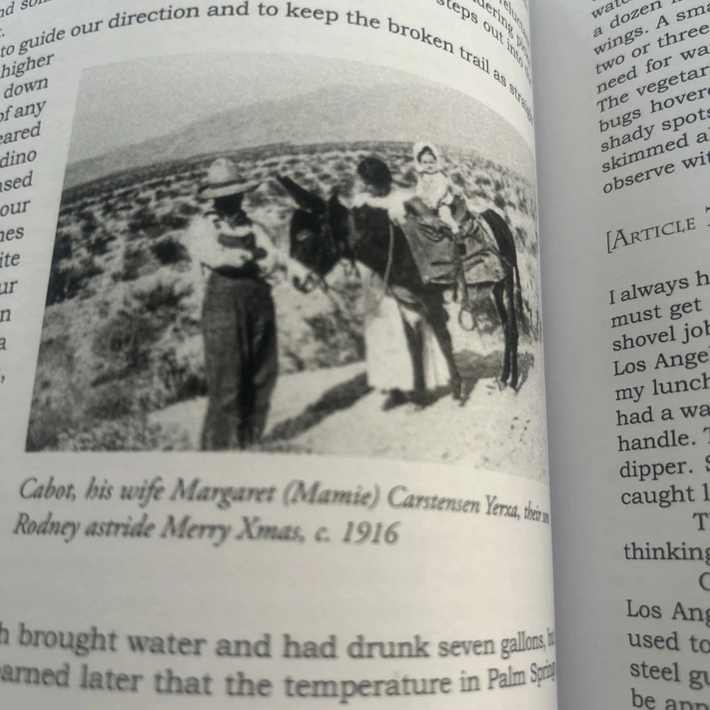 . Welcome to myvivabooks page !!!!! Today we have for sale this item Take a look ! On The Desert Since 1913 Yerxa, Cabot Abram Published by Cabot's Museum Foundation, Desert Hot Springs, 2011 NICE as pictured First Edition a great condition softcover appears unread clean 203 pages. Many rare photos. In the 1950s, Cabot A. Yerxa published 280 newspaper columns describing his struggles and joys as a Desert Hot Springs-area homesteader from 1913 to 1918, his discovery of the "miraculous" hot water aquifer, his observations of desert life, and his friendships with Hollywood celebrities at the nearby B-bar-H Ranch in the 1930s and 40s. This book offers generous selections from those columns, plus a chronology of Cabot's early years, an interview covering his trips to the Alaska Gold Rush, a glimpse into his later life as proprietor of Cabot's Old Indian Pueblo Museum, , 22 509 home I ship well protected from California , USA media mail and books can take 14 days , most take less than 10 days . Please let us know if you have any special request or questions about this book. We don't ship overseas,sorry. We pack with bubble wrap and new containers, record boxes regular boxes with tracking items over 50.00 insured .
