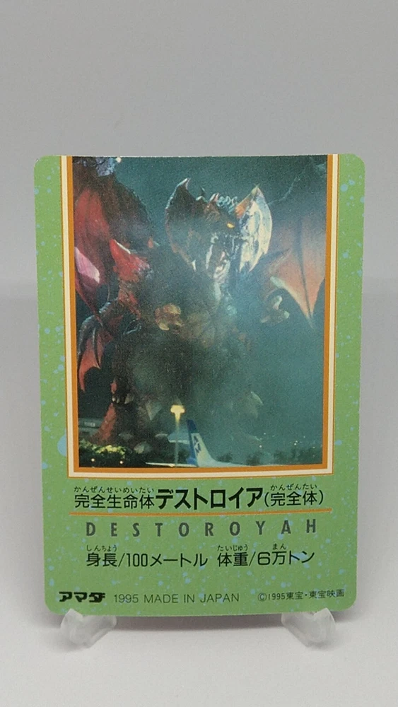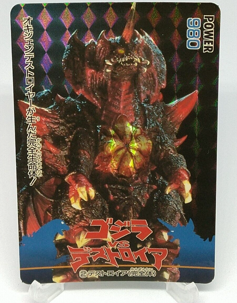Destoroya Godzilla vs Destoroyah Trading Card No.2 Holo AMADA Japanese 1995 Toho Description Beautiful Please see the picture for the details of damages and dirt or ask us before your purchase. 100% Authentic or Money Back Guaranteed. (Do not worry you are protected by eBay and eBay Managed Payments) See the pictures for more details. If you have any question about the condition, accessories, or anything about the product, please feel free to message us. We are glad to answer all your concerns. Payment Same as ebay payment method. Shipping Economy shipping: Delivery time will be about 11 - 23 days with tracking number. Standard shipping: Delivery time will be about 5 - 10 days with tracking number. Expedited shipping: Delivery time will be about 1 - 4 days with tracking number. Terms of Sale Money back guarantee within 30 days if returned by customer. We would not be able to accept your bid if you; 1) Don't have a PayPal account. 2) Have unpaid items reported. 3) Have a primary shipping address in countries you don't ship to. 4) Have reportedly violated eBay policies. 5) Have a Feedback score lower than the number you specify. International Buyers - Please Note: Import duties, taxes and charges are not included in the item price or shipping charges. These charges are the buyer's responsibility. Please check with your country's customs office to determine what these additional costs will be prior to bidding/buying. These charges are normally collected by the delivering freight (shipping) company or when you pick the item up - do not confuse them for additional shipping charges.