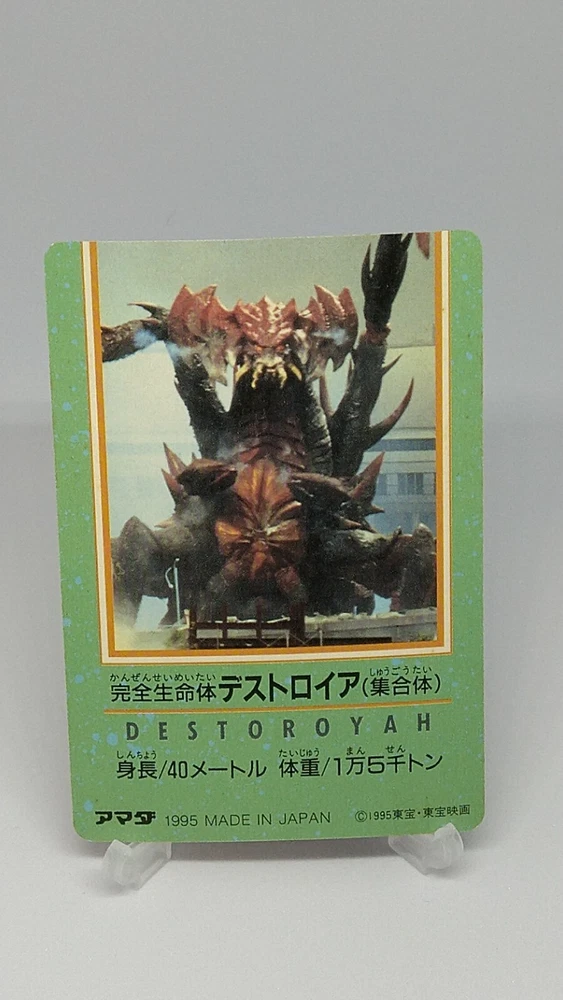 Destoroyah Godzilla vs Destoroyah Trading Card No.5 Holo AMADA Japanese 1995 Description Beautiful Please see the picture for the details of damages and dirt or ask us before your purchase. 100% Authentic or Money Back Guaranteed. (Do not worry you are protected by eBay and eBay Managed Payments) See the pictures for more details. If you have any question about the condition, accessories, or anything about the product, please feel free to message us. We are glad to answer all your concerns. Payment Same as ebay payment method. Shipping Economy shipping: Delivery time will be about 11 - 23 days with tracking number. Standard shipping: Delivery time will be about 5 - 10 days with tracking number. Expedited shipping: Delivery time will be about 1 - 4 days with tracking number. Terms of Sale Money back guarantee within 30 days if returned by customer. We would not be able to accept your bid if you; 1) Don't have a PayPal account. 2) Have unpaid items reported. 3) Have a primary shipping address in countries you don't ship to. 4) Have reportedly violated eBay policies. 5) Have a Feedback score lower than the number you specify. International Buyers - Please Note: Import duties, taxes and charges are not included in the item price or shipping charges. These charges are the buyer's responsibility. Please check with your country's customs office to determine what these additional costs will be prior to bidding/buying. These charges are normally collected by the delivering freight (shipping) company or when you pick the item up - do not confuse them for additional shipping charges.