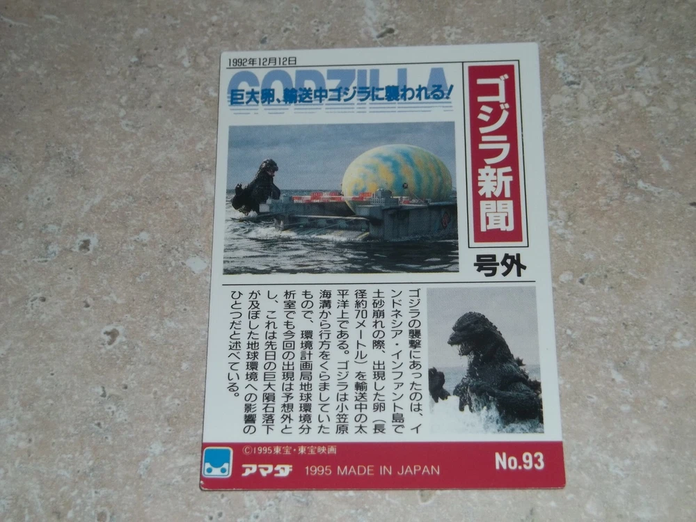 Destroroyah #93 Godzilla TRADING CARD 1995 amada very rare japanese Placed in top loader when purchased...