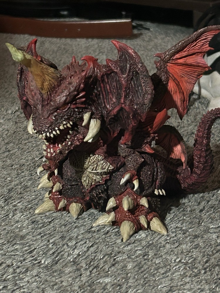 The Destroyah figure is a rare collectible from the Godzilla franchise, manufactured by Plex in Japan. This red-colored figure features the iconic character Destroyah and comes with its original box and instruction booklet, adding to its appeal as a sought-after item for fans of the series. With its 2019 release year, this piece is a valuable addition to any animation merchandise collection, particularly for those interested in TV, movie, and video game-themed memorabilia.
