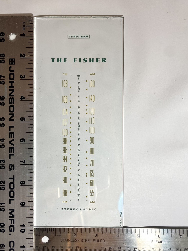 Dial Glass from a 1964 Fisher Custom Electra VII Model E-49 Stereo Console Dial Glass Part # N960-109A Tuner Chassis # 590T. This is a used item and the photos are part of the description. Please view all of them closely and ask any questions before buying. Returns are only accepted if the item is not as described. Thank you for looking! 100% Positive Feedback! Buy with Confidence.