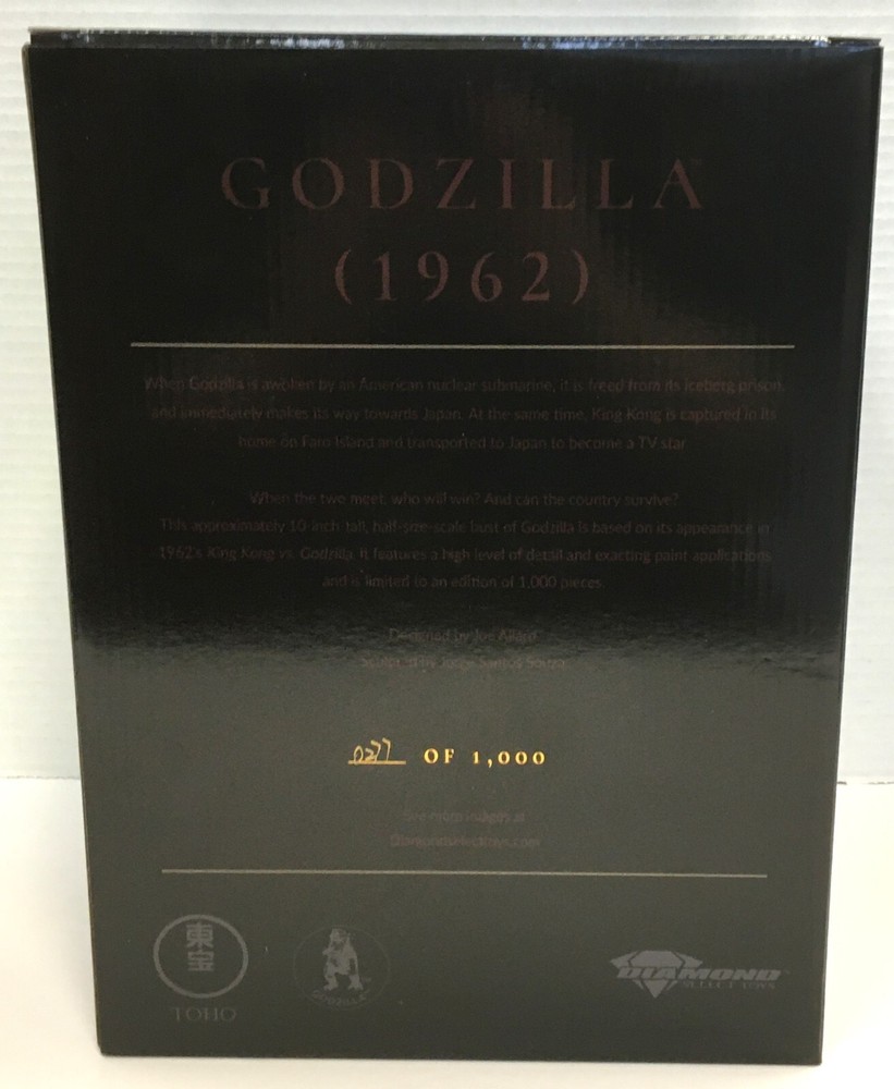 Diamond Select Legends In 3-Dimensions GODZILLA 1/2 Scale Resin Bust ITEM IS NEW IN BOX Packaging has minor shelfwear. ALL ITEMS SHIPPED SECURELY ** CHECK OUR STORE FOR MORE GREAT GODZILLA ITEMS !!! WE OFFER COMBINED SHIPPING ON ALL ITEMS! OR REQUEST LOCAL PICK UP IF YOU ARE IN THE METRO DETROIT AREA! WE SHIP SECURELY! BID WITH CONFIDENCE. BIG BEN'S COMIX OASIS BUYS COMICS ! WE SHIP ANYWHERE IN THE WORLD! We use the eBay GLOBAL SHIPPING PROGRAM! Please refer to the SHIPPING CALCULATOR on the listing for shipping estimates! Check out my other items ! BIG BEN'S COMIX OASIS HAS BEEN SERVING CUSTOMERS OF COMICS AND COLLECTIBLES FOR OVER 40 YEARS. WE HAVE AN EXTENSIVE INVENTORY AND A KNOWLEDGEABLE STAFF. CHECK OUT OUR EBAY STORE FOR MORE COOL AND RARE ITEMS!