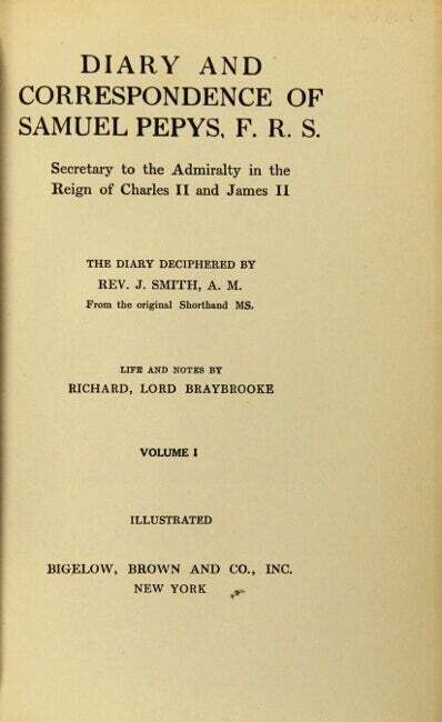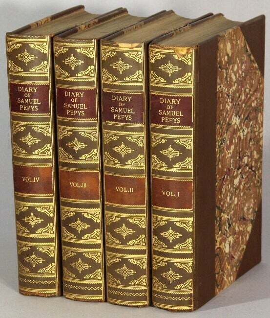 Diary and correspondence of Samuel Pepys, F. R. S., Secretary to The Admiralty in the reigns of Charles II and James II. The diary deciphered by Rev. J. Smith, A. M. from the original shorthand MS. Life and notes by Richard, Lord Braybrook Author: Pepys, Samuel Title: Diary and correspondence of Samuel Pepys, F. R. S., Secretary to The Admiralty in the reigns of Charles II and James II. The diary deciphered by Rev. J. Smith, A. M. from the original shorthand MS. Life and notes by Richard, Lord Braybrook Publication: New York: Bigelow, Brown and Co., Inc., n.d. [ca. 1930s] Description: 4 volumes, 8vo, frontispiece in each volume, several other plates and illustrations throughout; original three-quarter brown calf, gilt decoarted spines with red leather labels; 2 volumes with very slight chipping at the top, precious owner's bookplates; generally very good and sound. Reprint of the fourth edition. Seller ID: 66325 Subject: English Literature Rulon-Miller Books buys and sells rare, fine and unusual books in many fields, with an emphasis on language, early and unusual printing, voyages and travel, archives, and appraisal services. Catalogs issued regularly. We are members of the Antiquarian Booksellers' Association of America (ABAA). Guarantee All books are guaranteed genuine as described, and are returnable for any reason during the two weeks after receipt. Please notify us as soon as possible if an item is being returned, so that we might make it available to another customer. Shipping We are happy to ship to buyers outside of the United States. Please contact us for an exact shipping quote. All books shipped to US destinations are sent US Post Office Media Mail. We are happy to send via Priority Mail upon request for the cost of shipping. Priority delivery typically takes 3 to 5 days, but may be longer, especially during the holidays. Faster shipping is available, please contact us for a price quote. For international purchases please contact us directly. We will combine shipping on items purchased at the same time. Feedback We leave feedback for buyers once they have posted feedback for us. If you are unhappy with any aspect of a transaction with us, please contact us immediately. We work hard to keep buyers happy and to resolve the rare problem promptly. This listing was created by Bibliopolis.