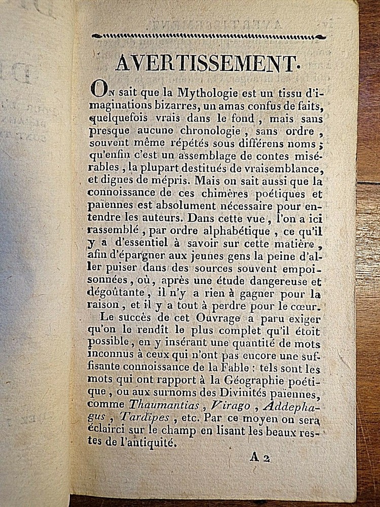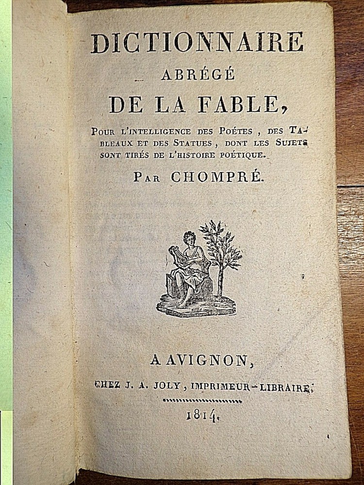 Dictionnaire Abrege de la Fable Pour L'Intelligence des Poetes, des Tableaux et des Statues, dont les Sujets sont Tires de L'Histoire Poetique Par Chompre Published by Chez J.A. Joly (1814) - Leather Hardcover Edition Info Not Provided Book is in very good condition, with wear to the covers, especially the corners, edges, and spine..