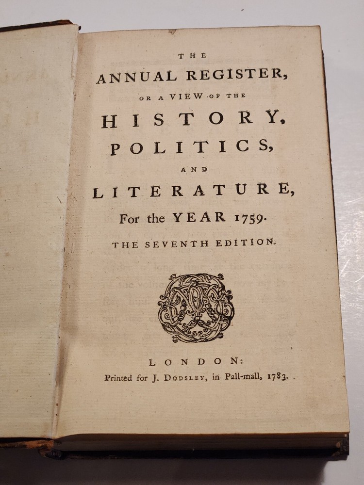 Dodsley's Annual Register 1759 History Politics Literature London 7th Edition 1783