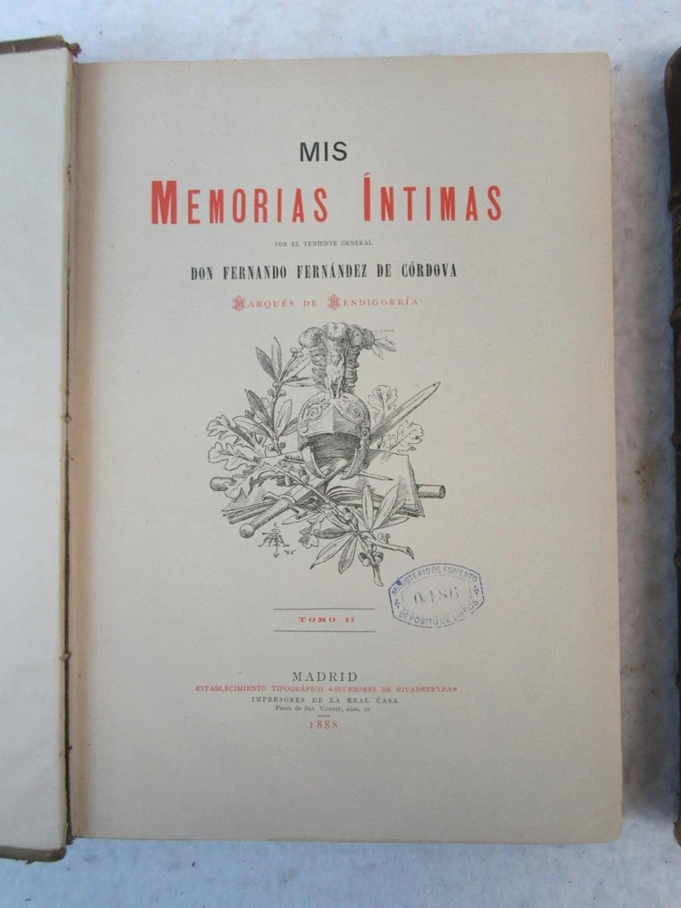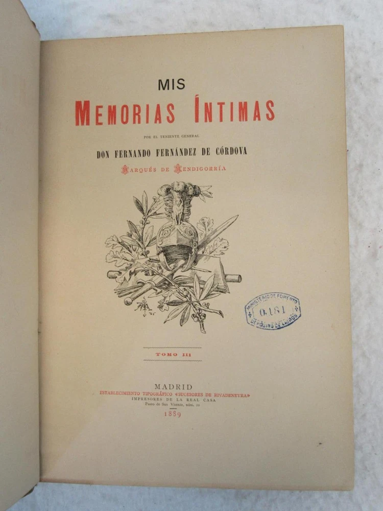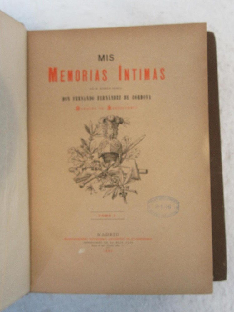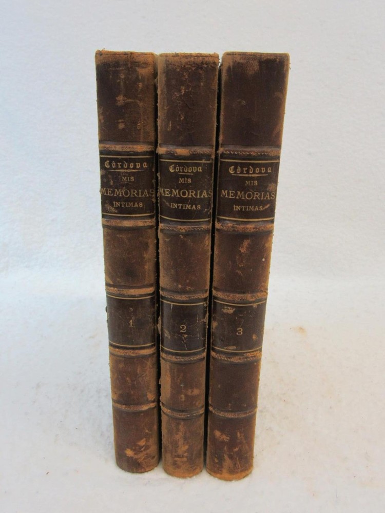 Don Ferando Frenandez Cordova MIS MEMORIAS INTIMAS 3 TOMOS 1886-1889 Condition: Good. Spines are firm without splits. Leather over cloth binding. Interior is excellent. With fold-out map. Condition: We strive to describe and photograph the condition of every item as accurately as possible. Photos are of the actual item that is being sold. Please examine the photos carefully for any condition details and possible flaws. Best Offers: We consider all offers in relation to current market values. We try to respond almost immediately to most offers. Most of our counteroffers are firm but we are open to bargaining. Shipping: We combine shipping. When ordering multiple items from us please request a total before paying. We charge postage based on weight plus $1 for each eBay listing. All of our orders are packed carefully to prevent damage during shipment. We ship most of our items within 24 hours. Contact Us: We are available 7 days a week and are happy to answer any questions you may have. Attention Sellers - Get Templates Image Hosting, Scheduling at Auctiva.com.