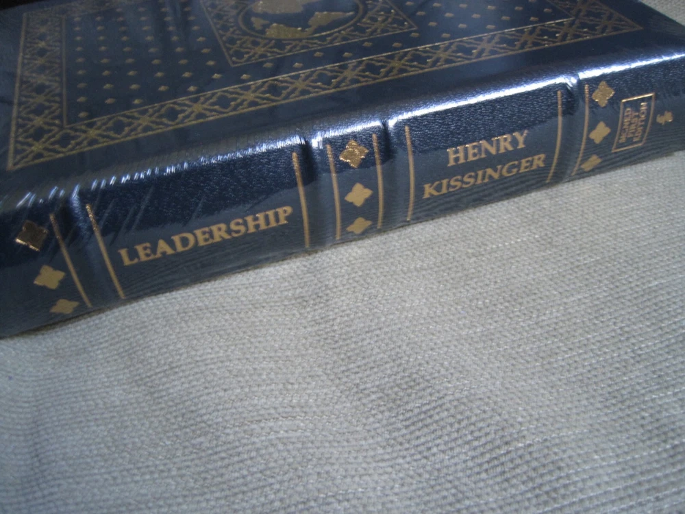This is a leather bound signed and numbered first edition of Secretary of State Henry Kissinger's latest best-seller - "Leadership - Six Studies In World Strategy". The book is in unread, brand new condition, still sealed in the original plastic packaging. It is signed by the former Secretary of State and Nobel Prize winner on the limitation page, and includes the signed and dated certificate of authenticity and the publishers note card. Easton Press Full Genuine Leather Hubbed Spine Accented Wit 22 kt. Real Gold Satin Ribbon Page Marker Distinctive Cover Design Gilded Page Edges To Protect Against Humidity High Quality Acid - Free paper Smyth-Sewn Pages Silk-Moire Endleaves I combine multiple items for savings on shipping charges. I ship worldwide. Please ask about international shipping charges and/or different shipping options. Thank you!