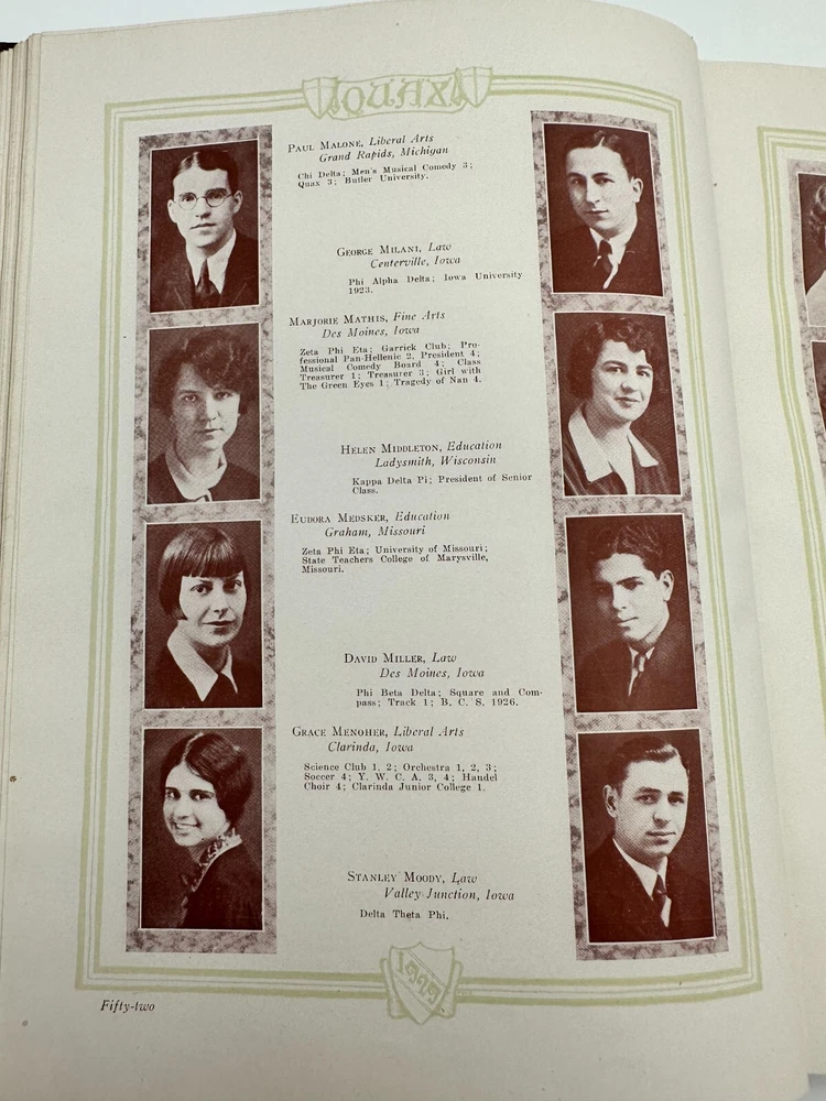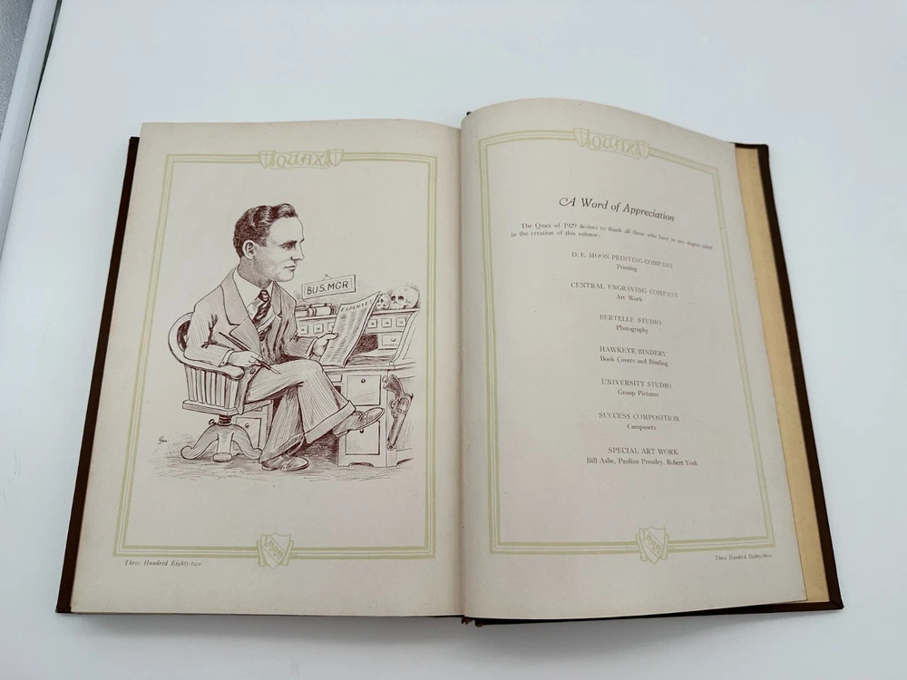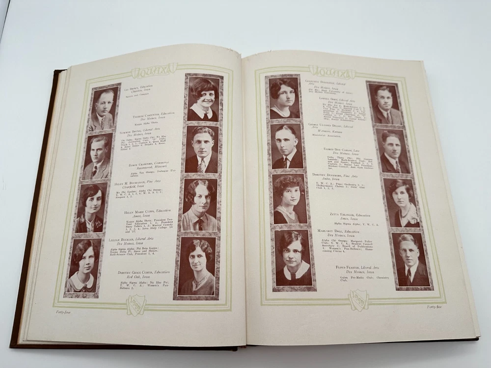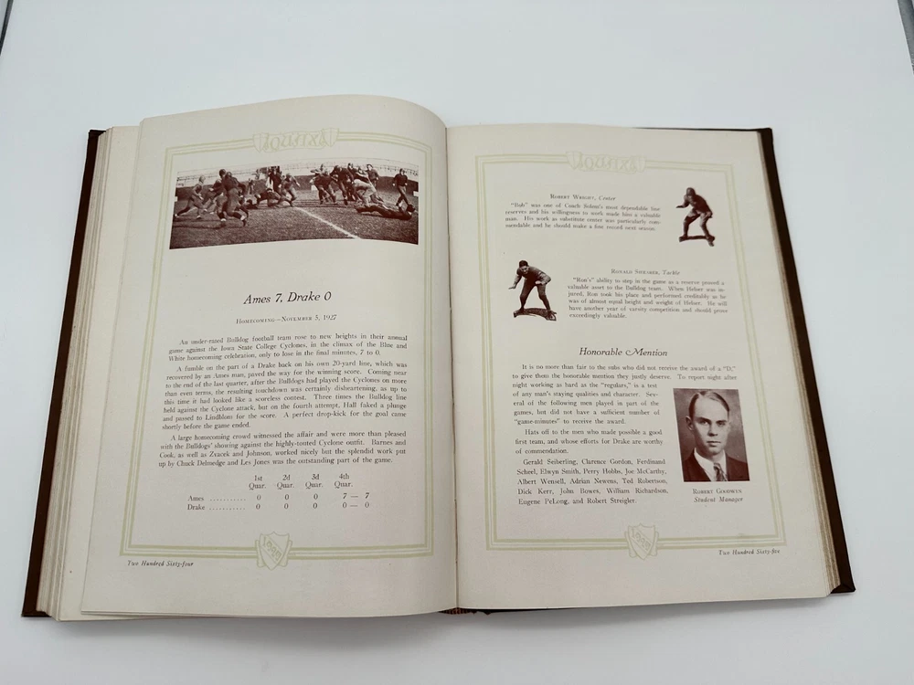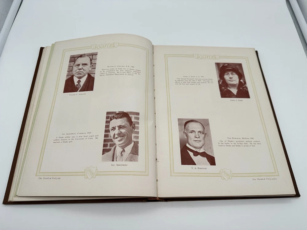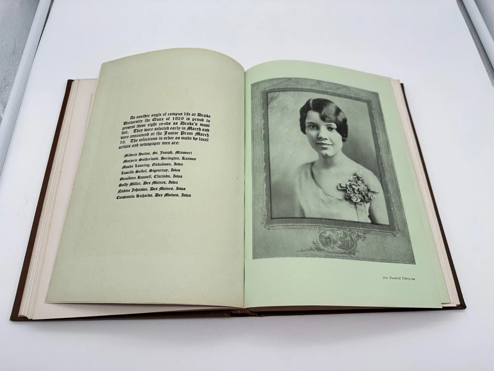 Description Up for auction is a Drake University QUAX Original Vintage 1929 Yearbook Leather Bound Des Moines, Iowa! Other than the previous owner's name on the first page (as seen in the photo), there is NO WRITING or MARKINGS of any kind throughout the book! Of note, I believe that the previous owner's name on the inside (Leon Miller) is the former mayor of Knoxville, Iowa and the former State Senator from Iowa based on the contents of the estate sale where this vintage yearbook was found! Please see photos! You are bidding on the exact item(s) in the photograph. Always bid according to the photo(s) shown, as that's what you are bidding on. Shipping We ship throughout the U.S. and internationally. Please note that we have been experiencing delays in shipping times due to high volumes in the U.S. Postal system. We try our best to reduce shipping costs for buyers, so we appreciate your understanding. Authenticity All of our items are guaranteed to be 100% authentic. We've been on eBay since 2001 and don't plan on going anywhere. Sales Tax Be advised that a number of states are now requiring eBay to collect the appropriate sales tax on all online purchases. If you are a resident in one of these states, you will see this tax automatically included at time of checkout. Note that eBay automatically includes the tax in the total - we cannot remove the tax from your invoice. Payment All payments must be made within four (4) days after the auction has ended. If you are bidding on another item that has not ended please let us know, or a nonpayment case may be opened. Feedback & Communication If you have any questions about the item(s) listed that the description or the pictures don't answer, please send us a message and we will do our best to answer you in a timely manner. We are part time eBay sellers, and we will respond to your questions within one (1) day. Please contact us through the eBay message system before bidding. All sales must be completed on eBay - no exceptions . We strive to ensure every customer is completely satisfied. If you're unhappy with your purchase for whatever reason, please contact us through eBay so we can make it right. Please see our feedback and bid with confidence. We are very easy to work with, and would prefer that you contact us first with any concerns, before leaving neutral or negative feedback. Returns Returns are not accepted unless there was an error in the listing. We include multiple photos and a detailed description so that you may feel comfortable in what you're bidding-on. If there was an error in the listing and you'd like to return an item, please contact us through the eBay messaging system and we will send a return label at our expense. A refund will be issued as soon as we receive the item back in its original packaging. Contact us with questions, see our feedback, and bid with confidence!