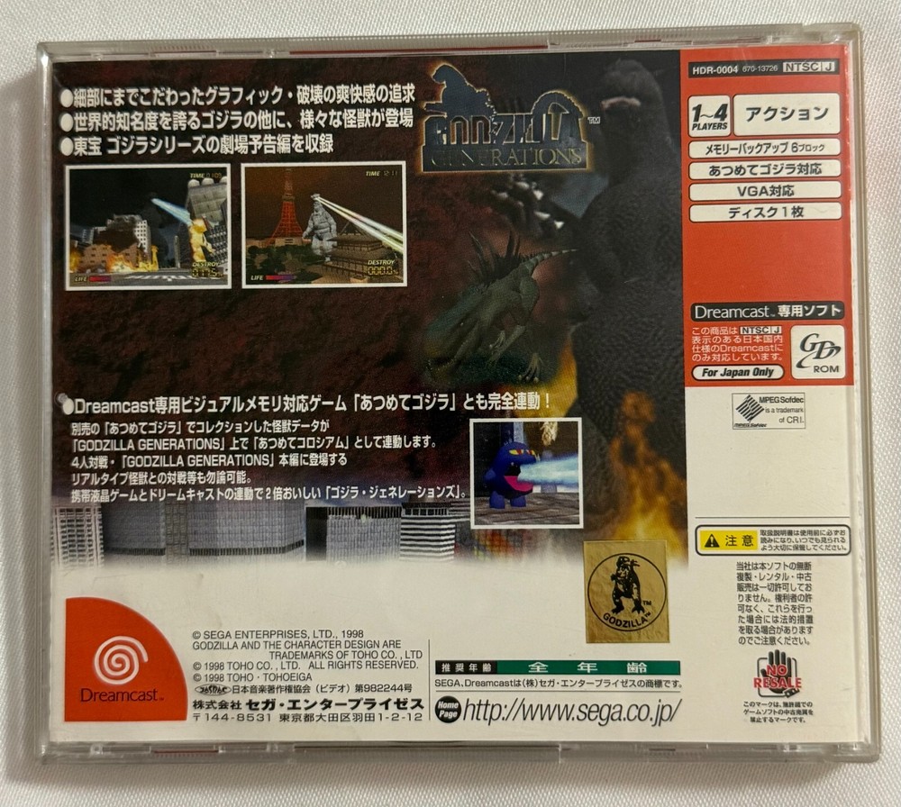 Dreamcast Godzilla Generations Dreamcast In Original Case Tested & Working Almost like new. The disc is near mint, couple of very tiny light touches that do not affect play. So nice! See our photos for details.