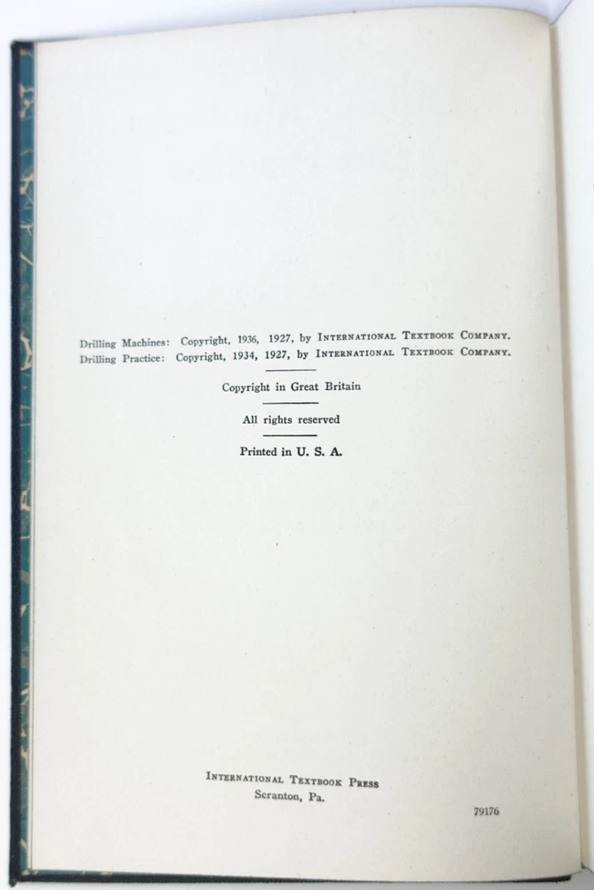 Drilling Machines and Practice 176 by I.C.S. Staff Fold-out Leather Bound 1936 Condition: Book is in good condition with some wear. Excellent illustrations throughout. Bagged and shipped with care. Please see all photos for best description of condition. See description for more details. Description: Publisher International Textbook Company, Scranton, PA., Leather Bound, separately numbered sections, Marbled endpapers, Fold-out included. Excellent illustrations throughout. Size: 5” x 7 5/8” Item is "As is". 30 Day Returns accepted. Please see all photos and e-mail me if you would like more views. Item is shipped within 1 business day once payment is received, and to include tracking. If the carrier transit of your item appears as though it will be late, is lost, or arrives damaged (will require photos if damaged), please message me. Delivery time will depend on the and location of buyer, carrier, and shipping type (Media, 1 st Class, Priority). I ship Worldwide for this item. International shipping is via the eBay Global shipping program so charges will vary and not all countries are included, so please check shipping pricing prior to bidding. BDRM, Under Table, Connie