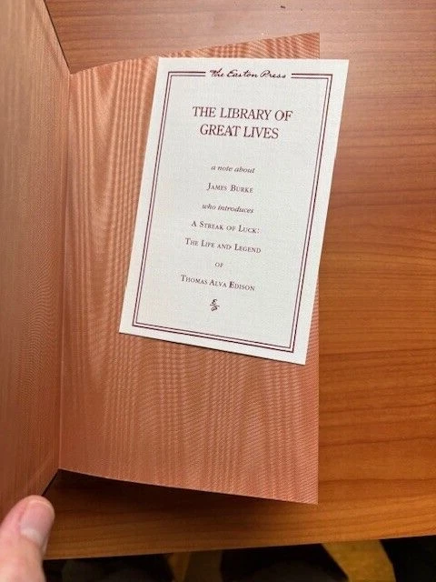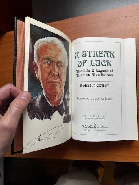 A Streak of Luck: The Life & Legend of Thomas Alva Edison Conot, Robert Published by Easton Press, 1992 LIQUIDATING OUR ENTIRE EASTON PRESS LEATHER BOOK COLLECTION. PLEASE SEE OUR OTHER LISTINGS ON THIS SITE AND ON MY HUSBAND'S eBAY SITE "bikerparking"